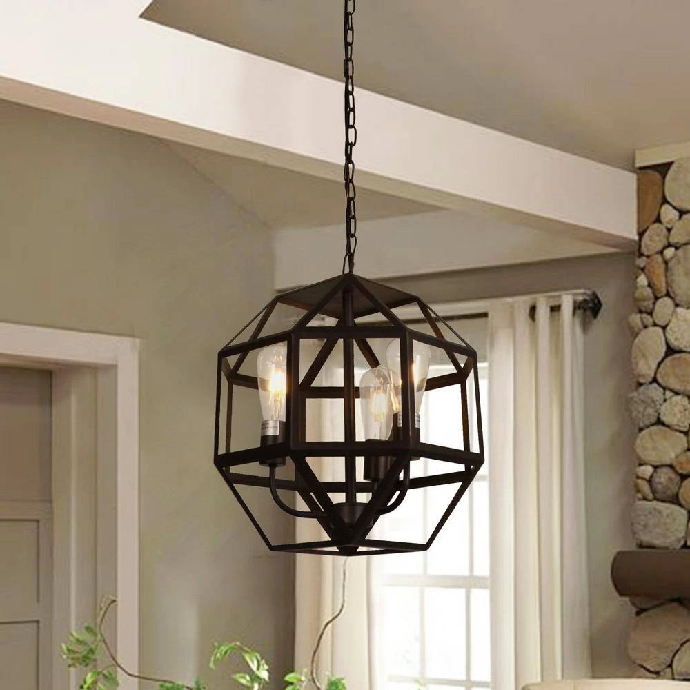 Upgrade your dining room, living room, bedroom or study with this 3-light chandelier. Its design features a geometric cage with a matte brown finish. Perfect for creating a rustic and vintage atmosphere in your household.