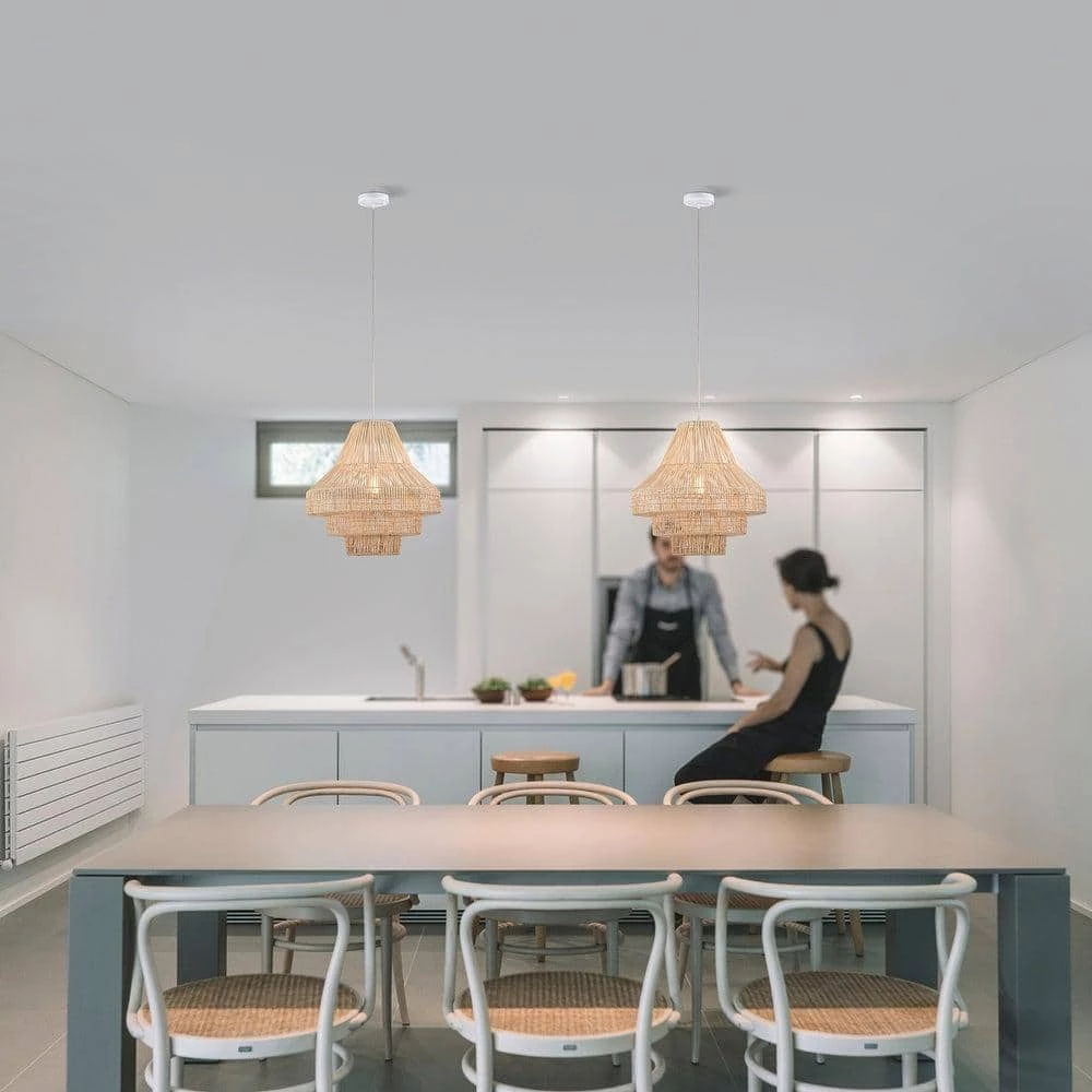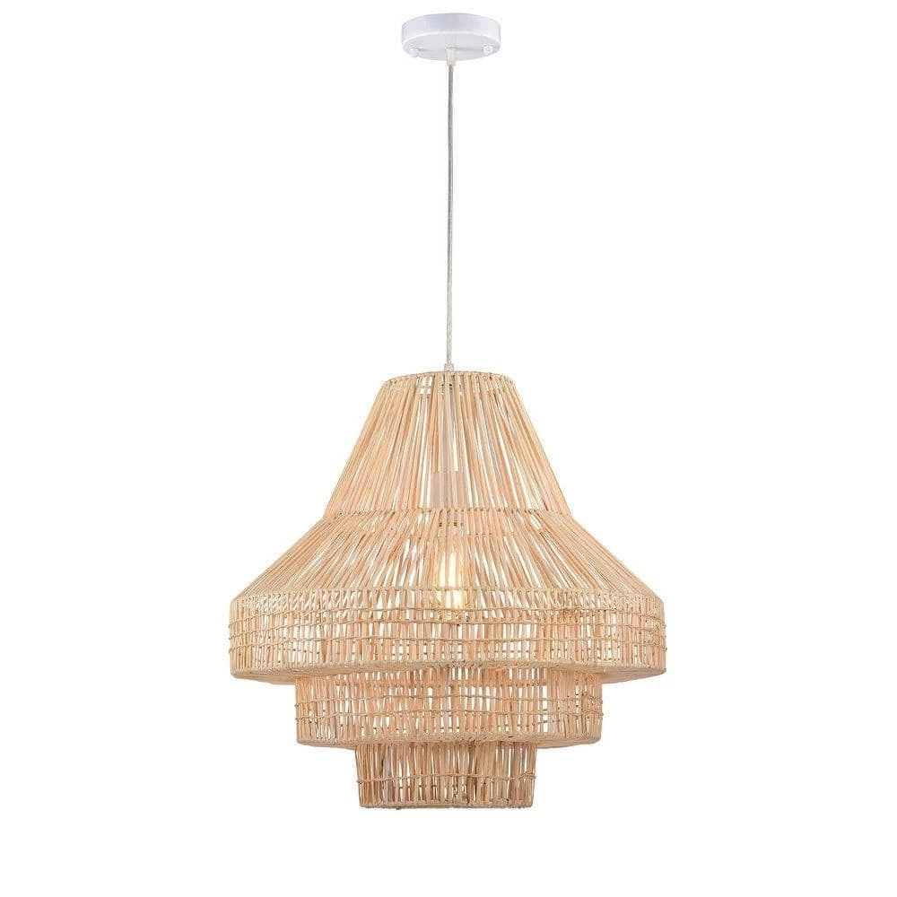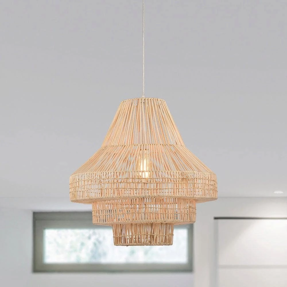 Create a refreshing and enriching environment with our 20-inch Cream Anita Pendant Ceiling Light. Featuring a three (3) tier shade, our fixture features hand crafted woven material, a natural fiber warm glow, and a design that casts delightful shadows in a room. Decorative during the day and decoratively functional at night, get the best of both worlds with our 20-inch Anita Pendant Ceiling Light.