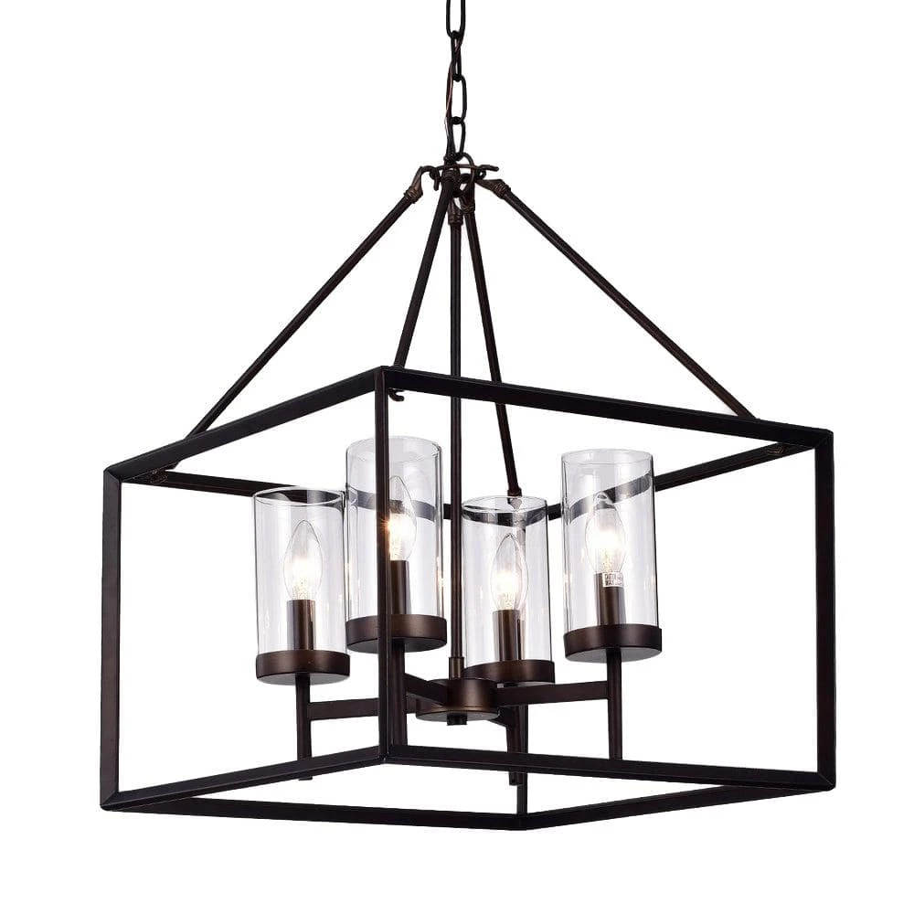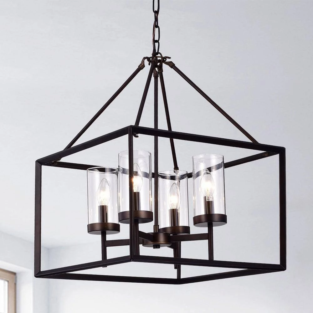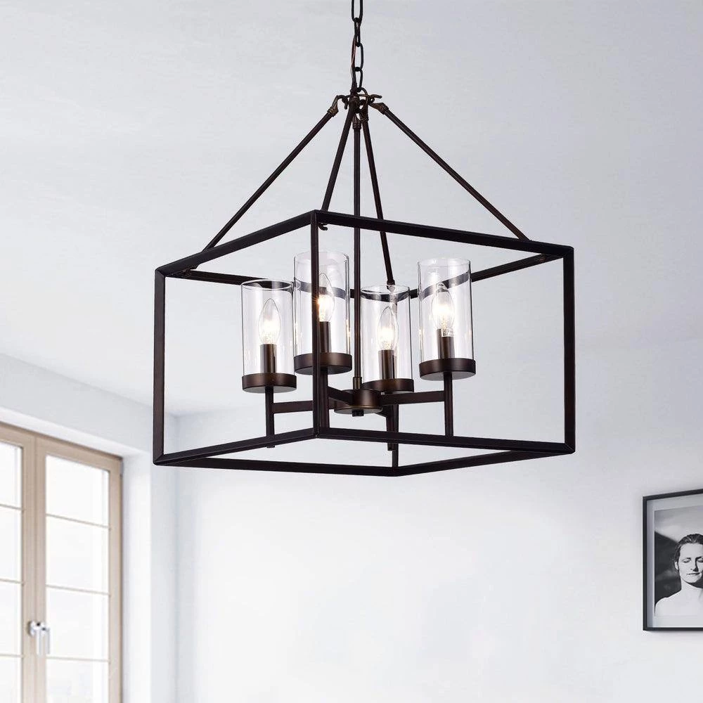 Bring a mixture of classical and industrial lighting to your dining room with this cube pendant light. The antique bronze finish open design and glass shades create an elegant contemporary fixture. It will bring sophistication on your room of choice.