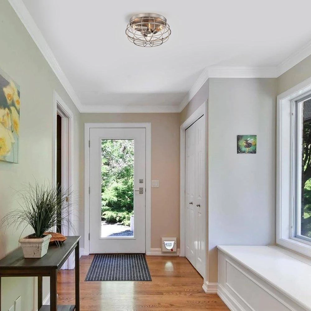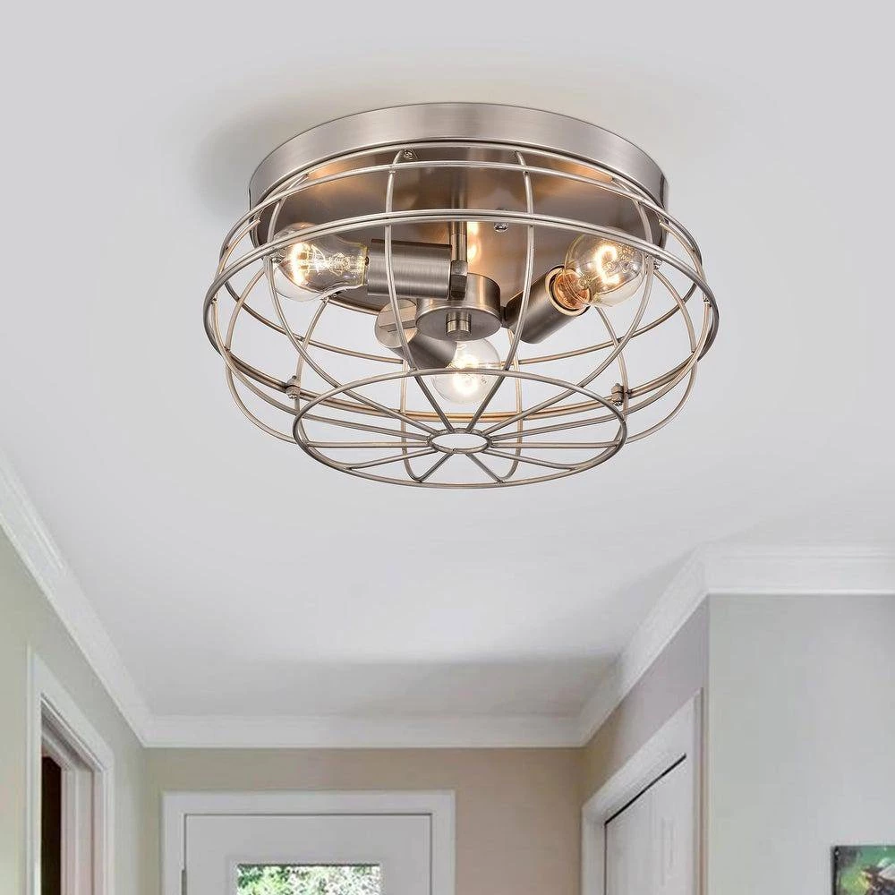 Enhance your living room’s industrial vibe while adding character to your space with this 3-light flush-mount chandelier. 3-lights sit horizontally inside this iron cage to supply ample illumination from this fascinating focal point on your ceiling.