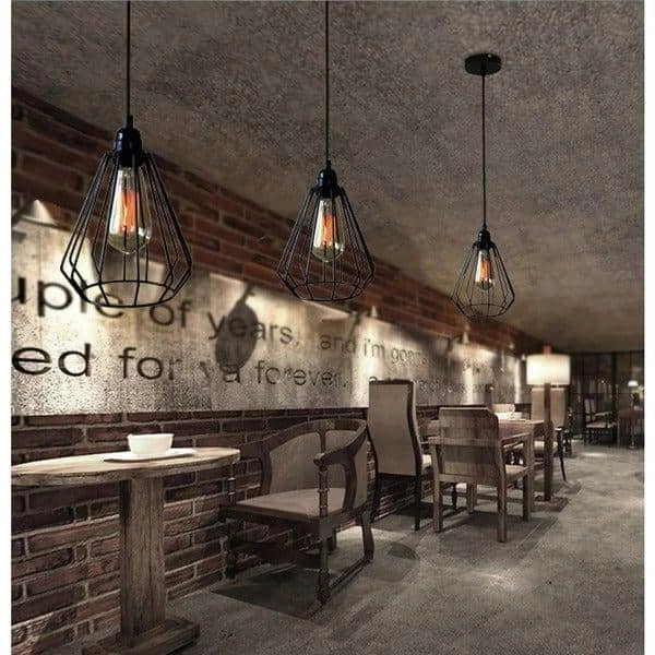 This pendant lamp features a unique cage-likeblack metal shade for the perfect brightness you want. This light fixture has an adjustable cord which makes it versatile and stylish for your home. Edison pendant lampBlack pendant lampAdjustable cord.