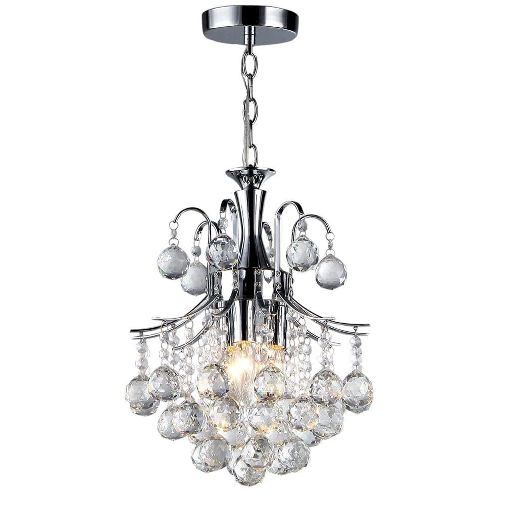 13 in. Arden Victorian Crystal Chandelier Ceiling Light offers an elegant clear tone luxurious crystal cut glass and silver chrome finish perfectly blends to complete the look. The Three 40-Watt candelabra illuminate your room with warm and sophisticated lighting. Furnish your home with a magnificent innovative design of fine crystal art glass.