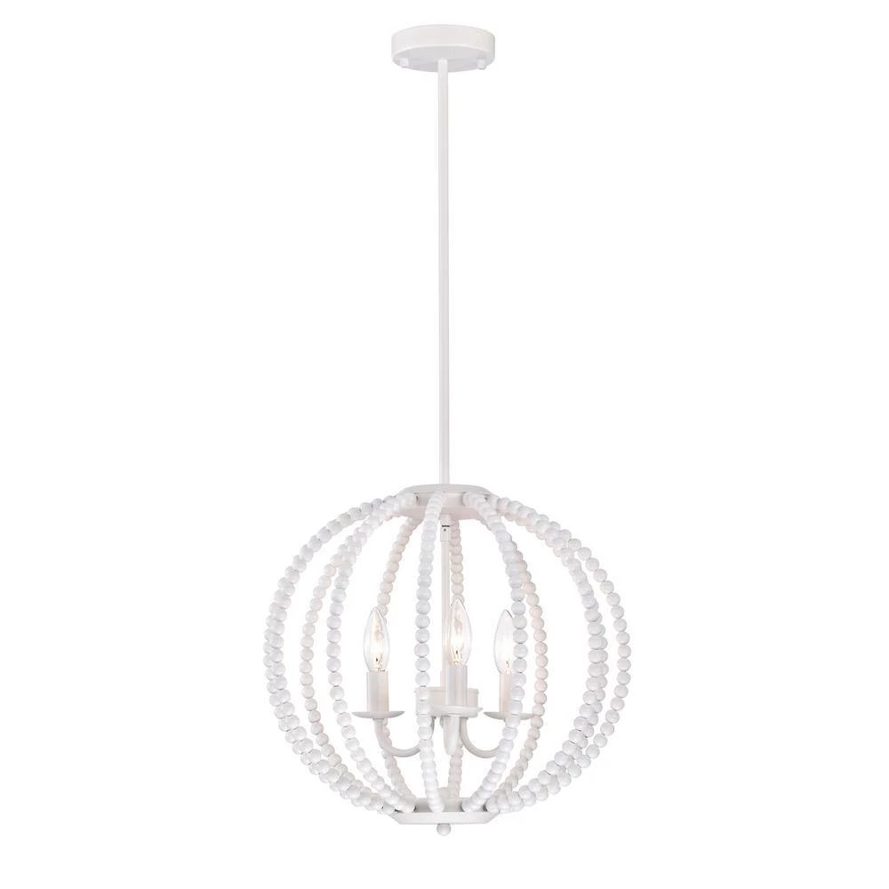 Allow your home to become a dream come true with our 16 in. Gloss White Arni Chandelier. Our fixture features 3-lights, an open cage-style shade made up of beads and a lovely design destined to exceed your home interior expectations. Take in a breath of fresh air after a long day with the help of our 16 in. Arni Chandelier.