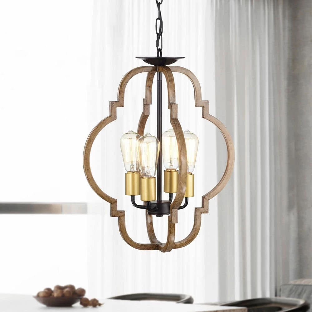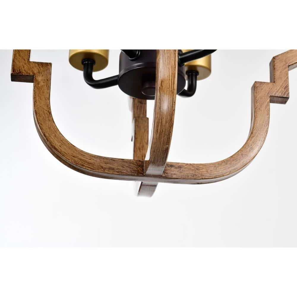 Allow your imagination to wonder in your home with our 16 in. Matte Black and Faux Wood Grain Ason Pendant Chandelier. Our fixture features 4-lights, an open faux wood grain shade and hints of Brass. Enjoy a refreshing environment with our 16 in. Ason Pendant Chandelier.