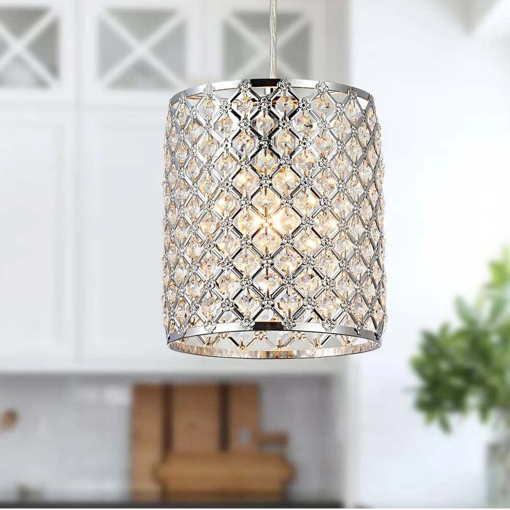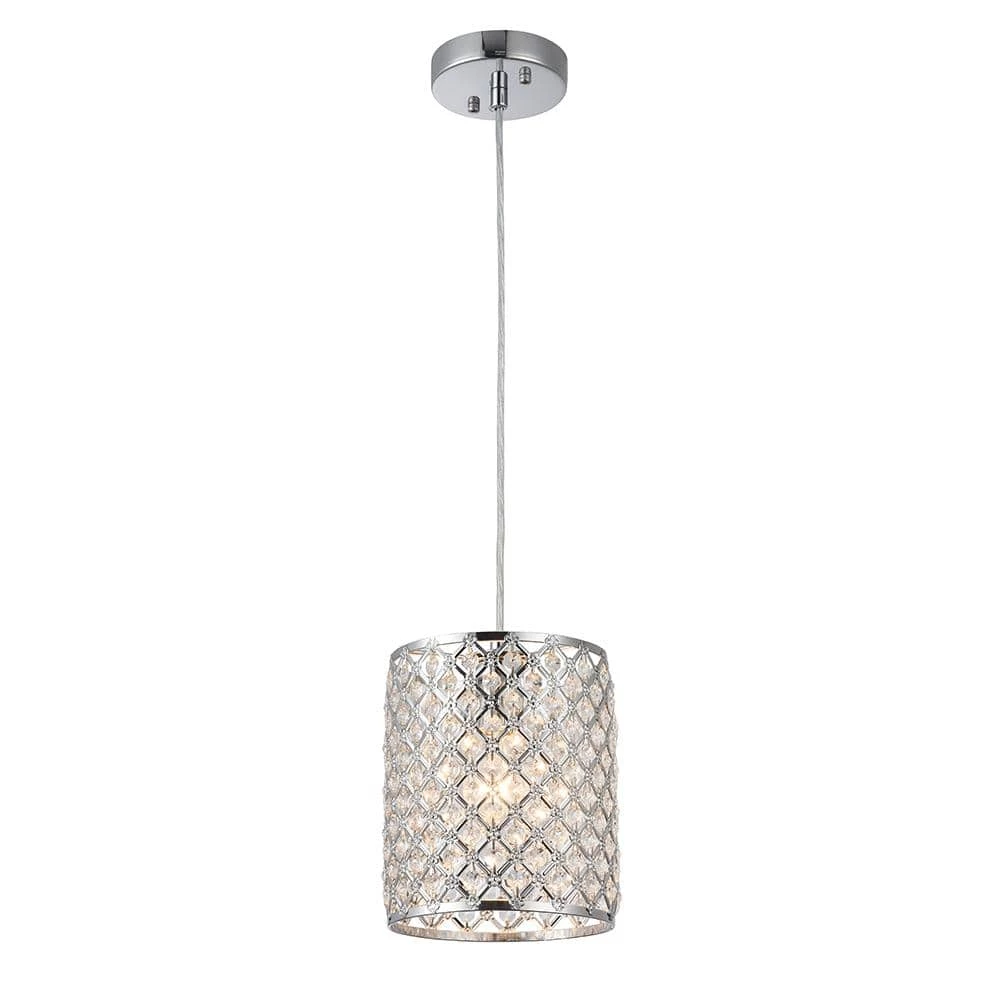 Chrome diamond cross pattern with nested crystals drum pendant. Hang several above your kitchen counter for a dazzling effect. Use this traditional pendant to update your house or foyer decor.