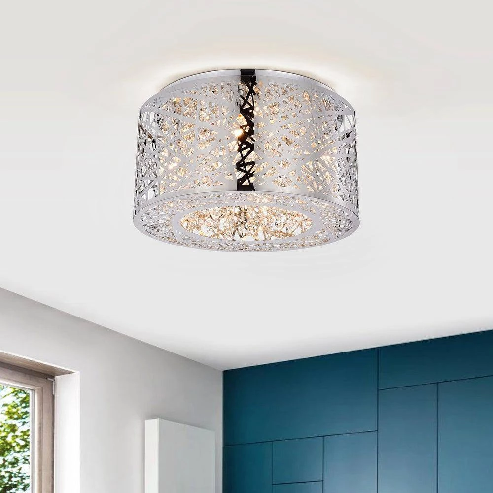This elegant chandelier design flush mount is the perfect choice for your living room or over your dining table. The hanging crystals encased in the drum-shaped shade adds elegance and transform the look of your decor. The 4-lights design provide multi-directional illumination in a wide area.