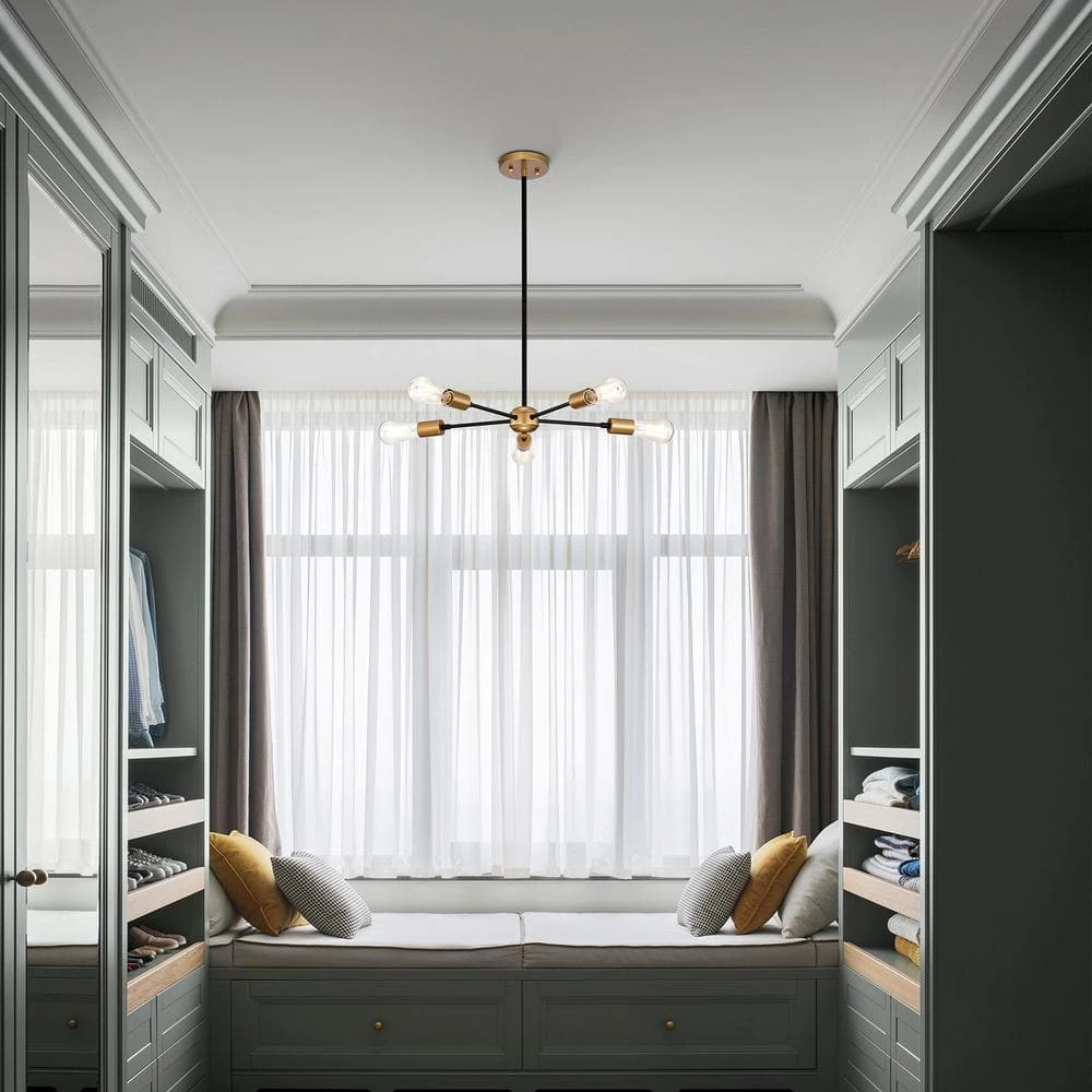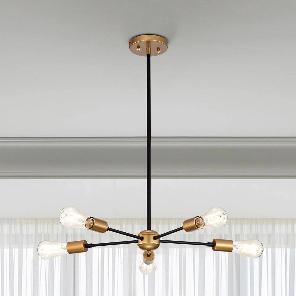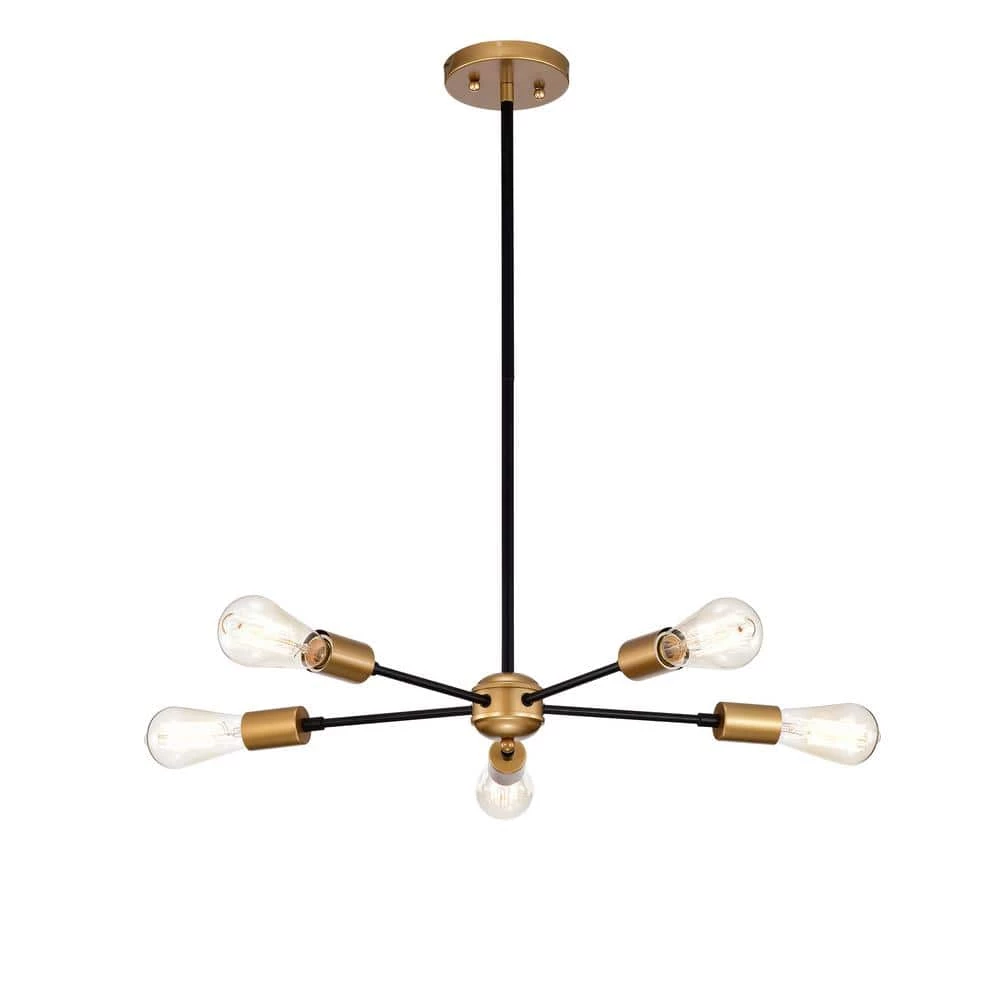 Include elegant and industrial charm to your interior space with this 5-light chandelier. This fixture features linear metal frames in matte black plus gold finish. The 5-light design provides plenty of illumination over a wide space.
