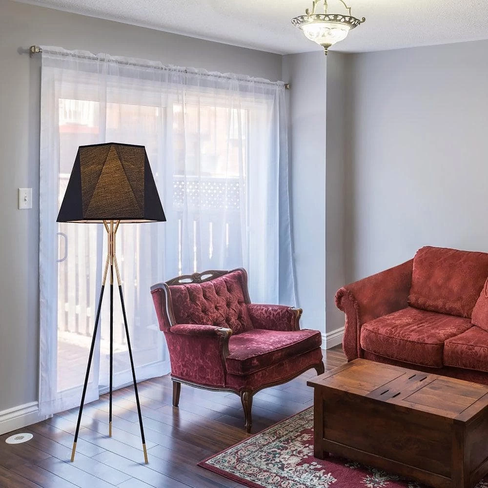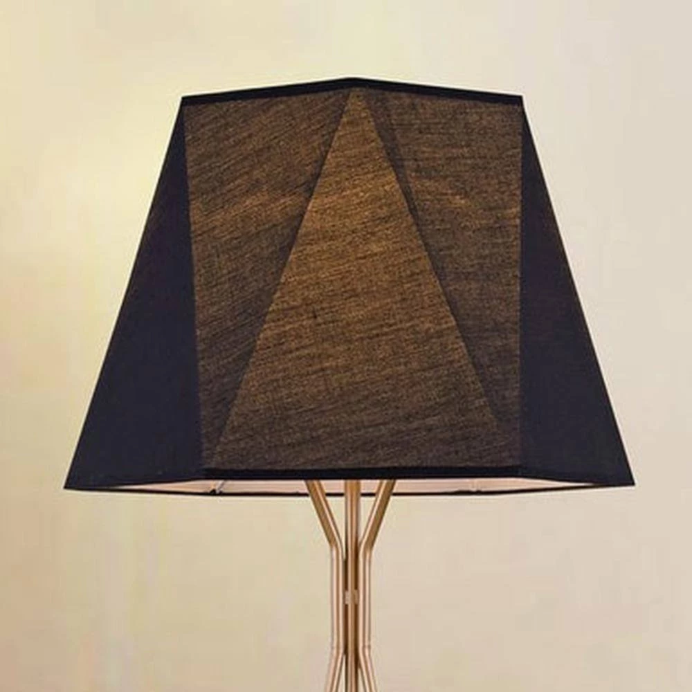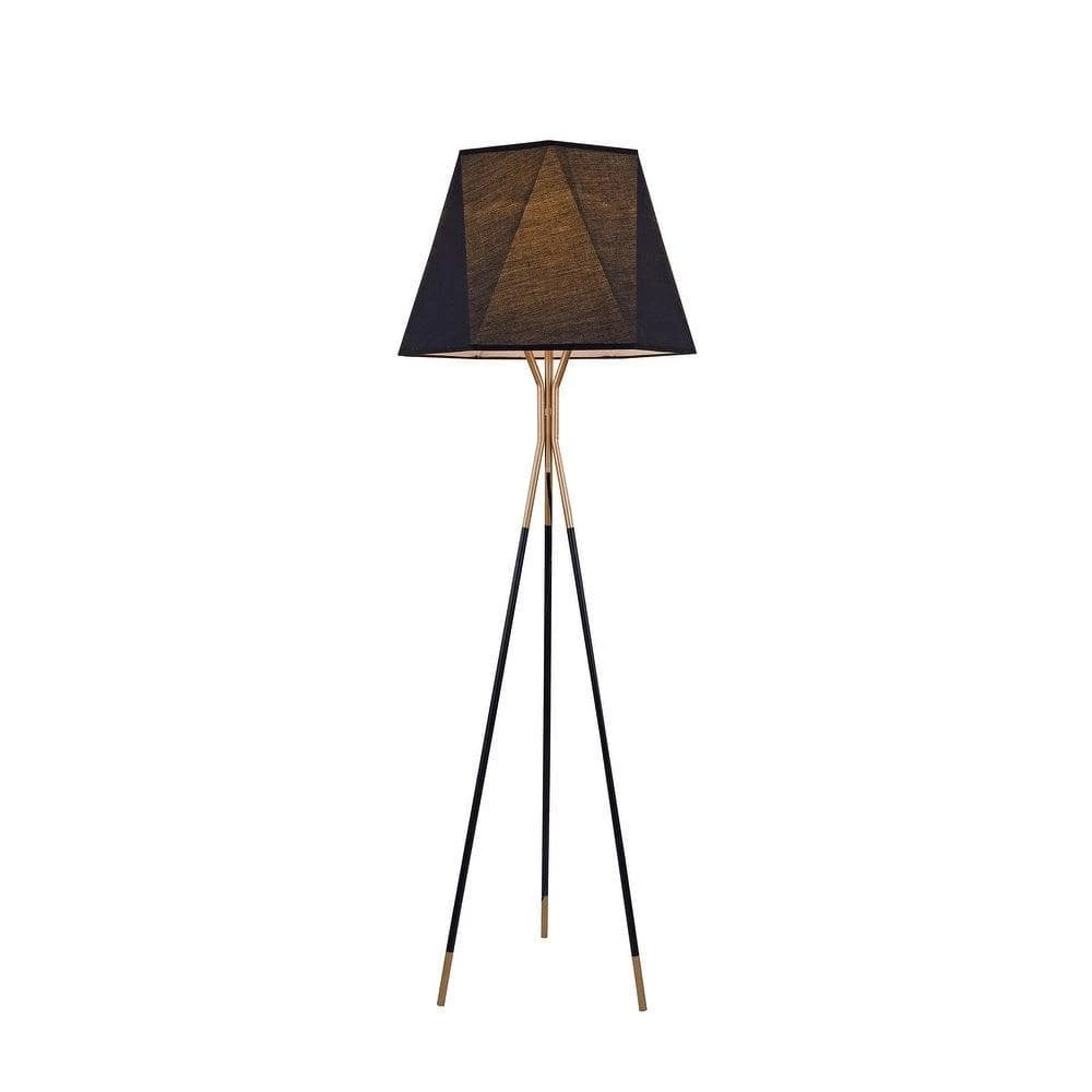 Bring a modern and improved look to any room with this fabric floor lamp. It features a black fabric cone shade with geometric pattern design that refracts light for sparkling illumination. The black metal accents and gold bronze finish are merged together for a distinct visual flair. This great piece of lighting is sure to brighten any room.