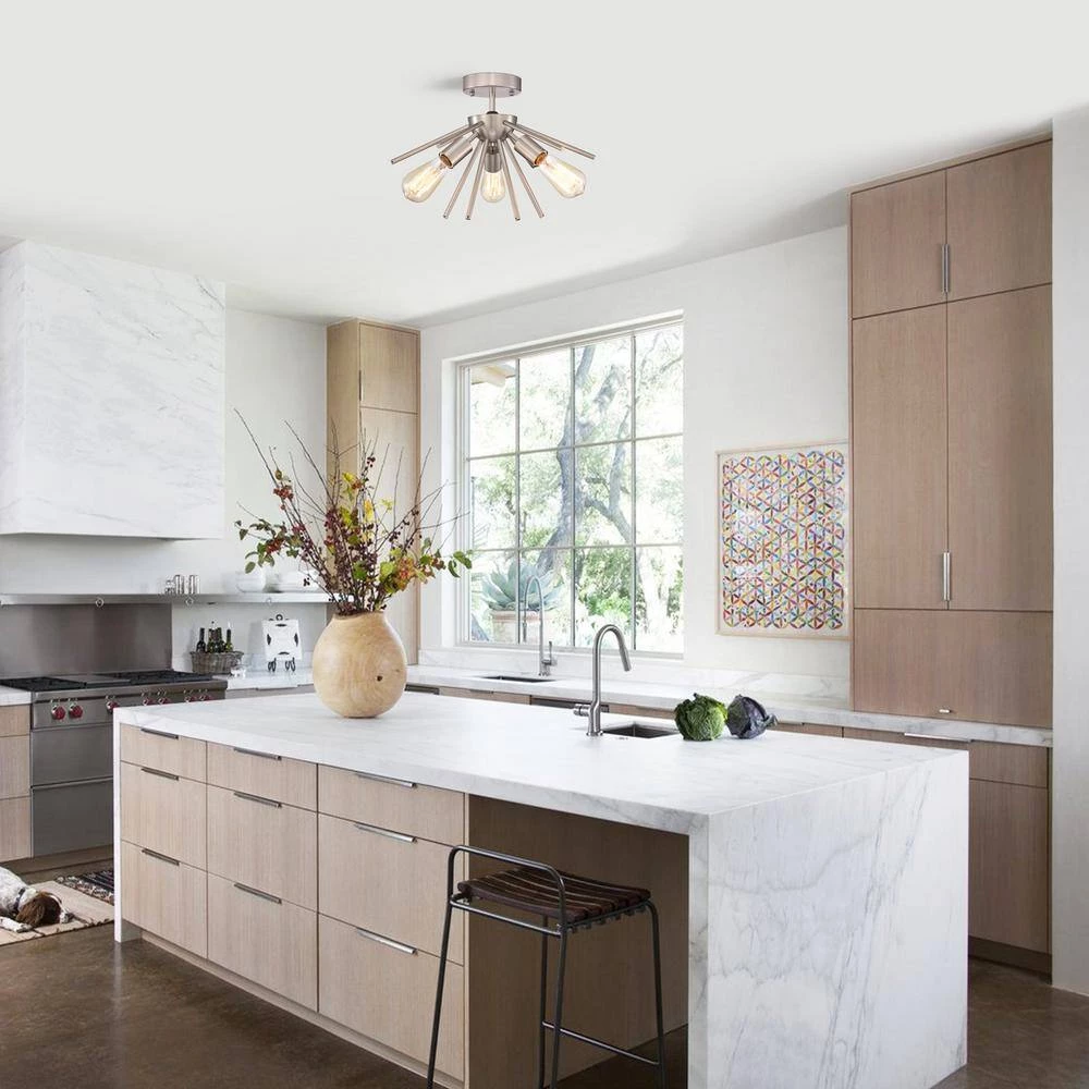 Enhance your home decor with this timeless and uniquely artistic sputnik 3-light semi-flush mount. The metal frames with polished nickel finished highlights both traditional and contemporary spaces. The 3-light design spreads light in multiple directions for even and balanced illumination.