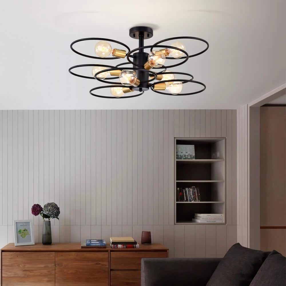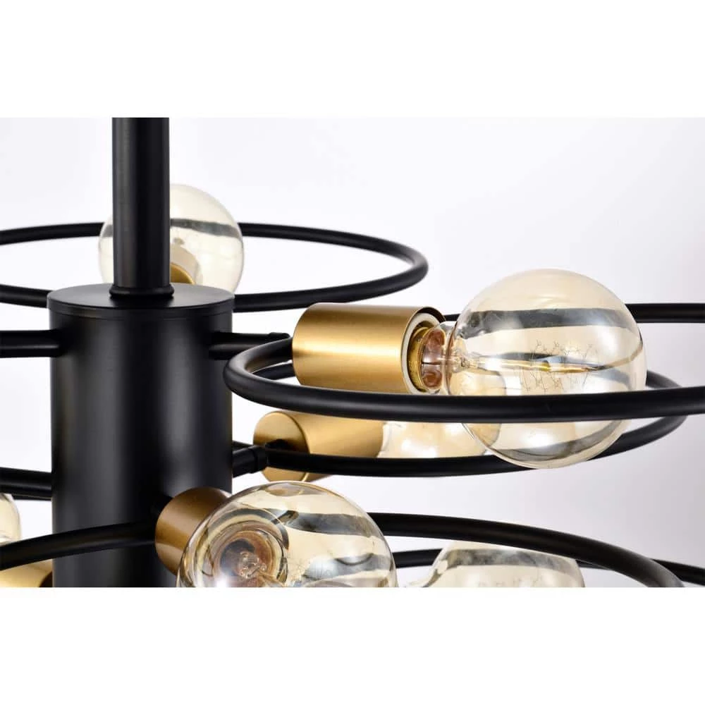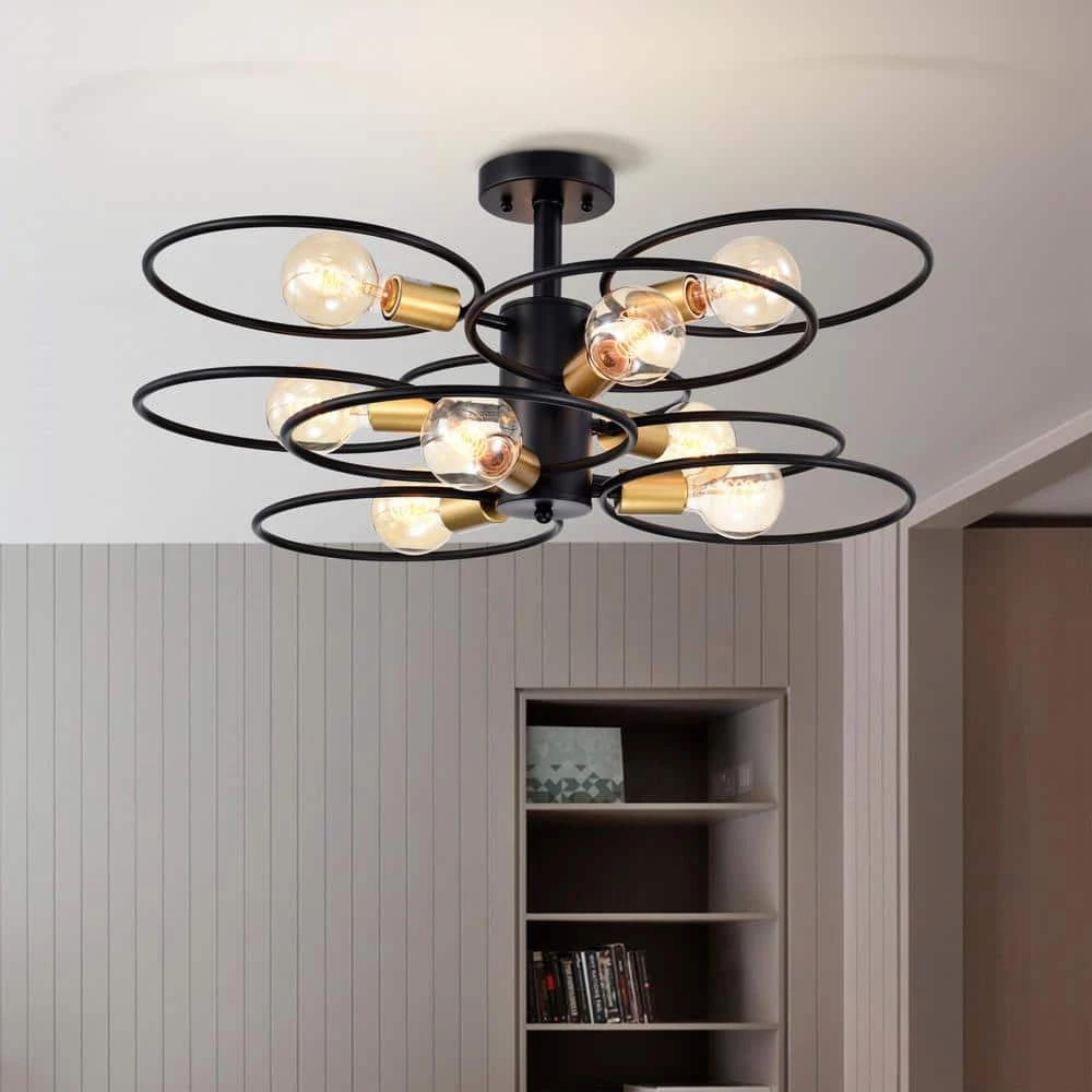 Our 28 in. Matte Black and Gold Camilla Ceiling Light packs a serious eye-catching design bound to enhance and amuse those around its presence. With 9-lights, its sure to illuminate any room elegantly. This fixture is also detailed in Gold which puts the cherry on top of what could be, one of your greatest investments to have ever made.