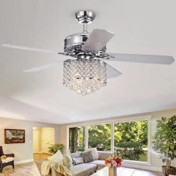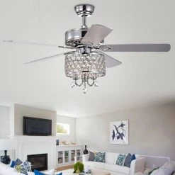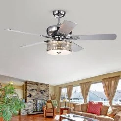 Fengren 52 in. Chrome Indoor Remote Controlled Ceiling Fan with Light Kit by Warehouse of Tiffany