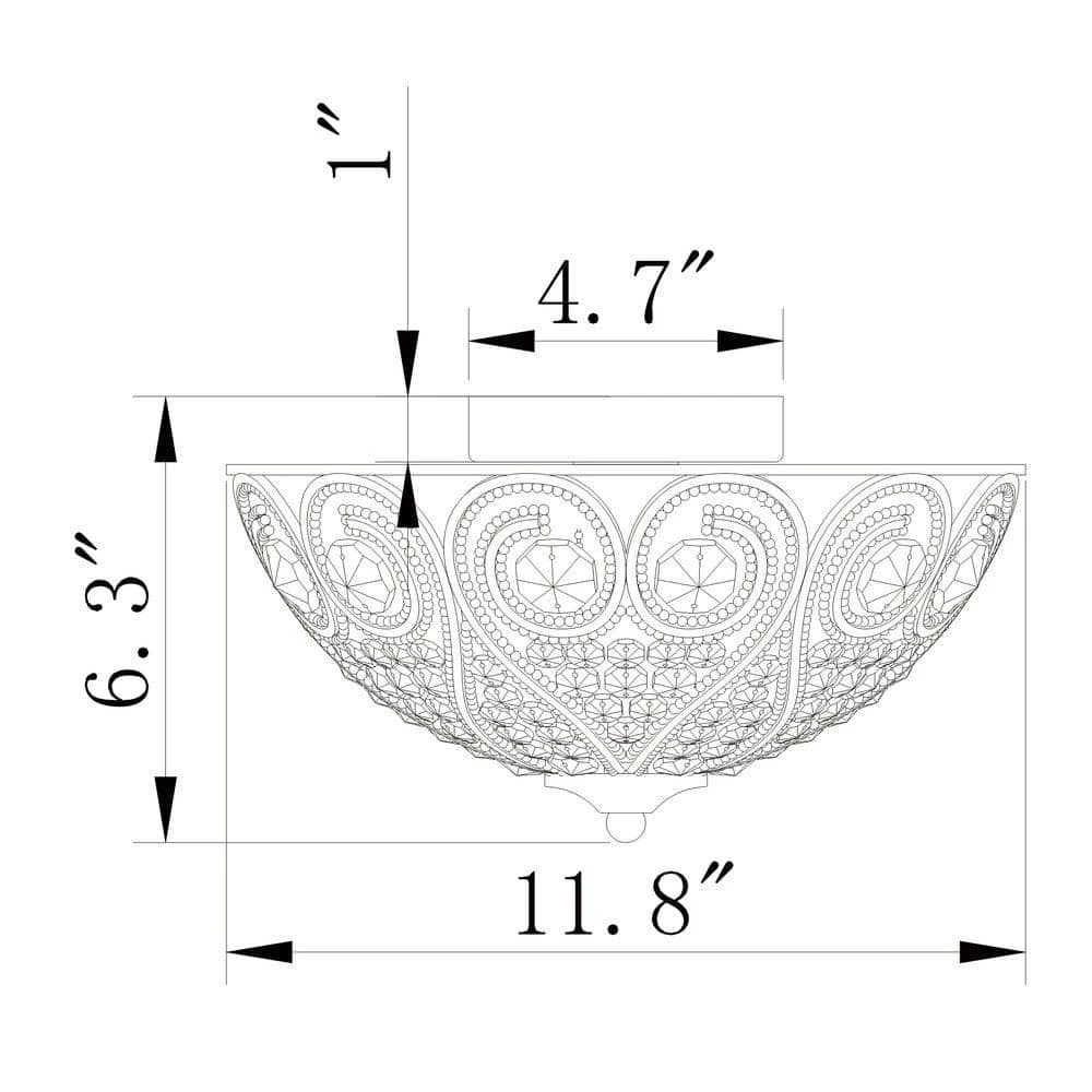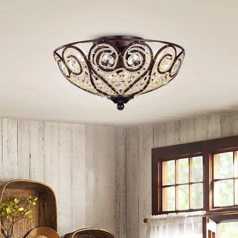 This beautiful flush mounted ceiling lamp is perfect in a traditional comfortable setting. The heart shaped scroll pattern mixed with high quality crystal blankets will add the perfect amount of elegance to your perfect home. The Customed elegant design of the shade will reflect across the whole room.