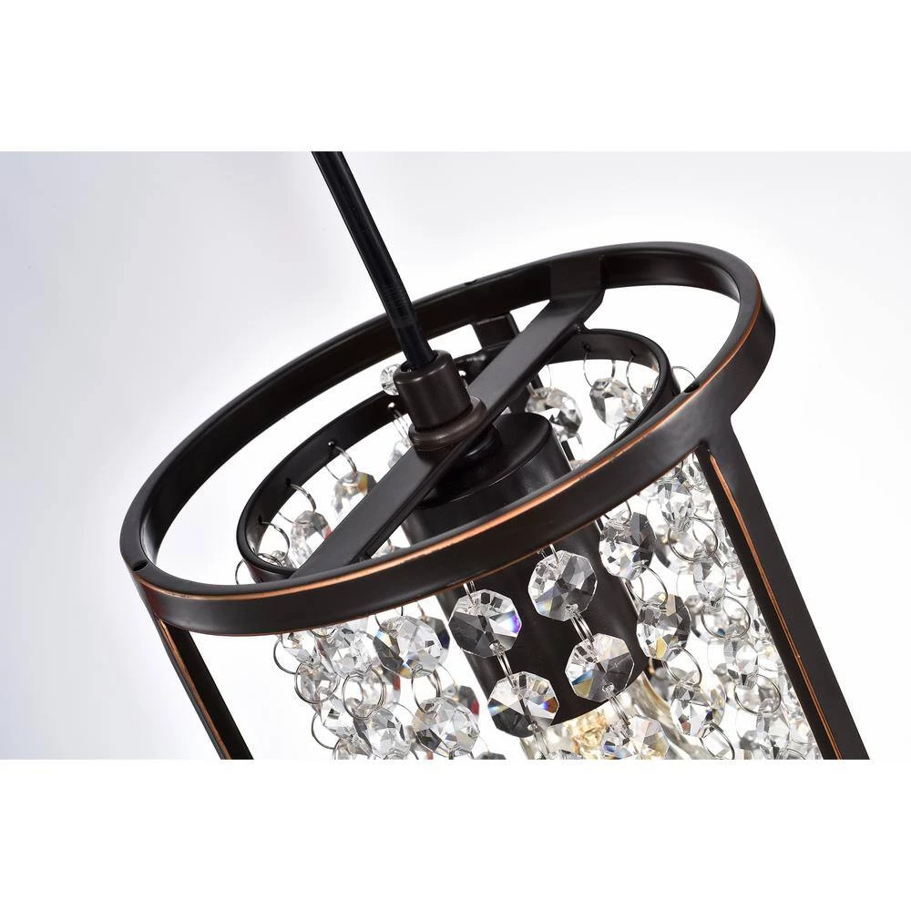 Enhance your home with this Oil Rubbed Bronze 1-light Pendant. Its clean metal frame houses a dazzling circular curtain of diamond-cut clear crystals. This simple yet elegant pendant diffuses light beautifully to create a warm and sophisticated ambiance in your household.