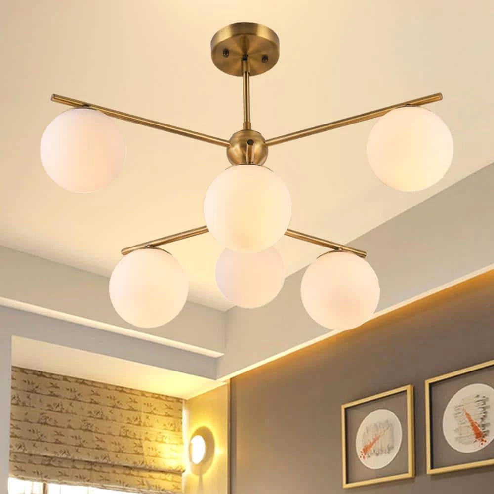 Create a bold statement in any household space with this modern 6-light chandelier. Its 2-tier sputnik style and brass finish beautifully contrasts the frosted globe shades. This chandelier pairs perfectly with any modern or contemporary home decor.