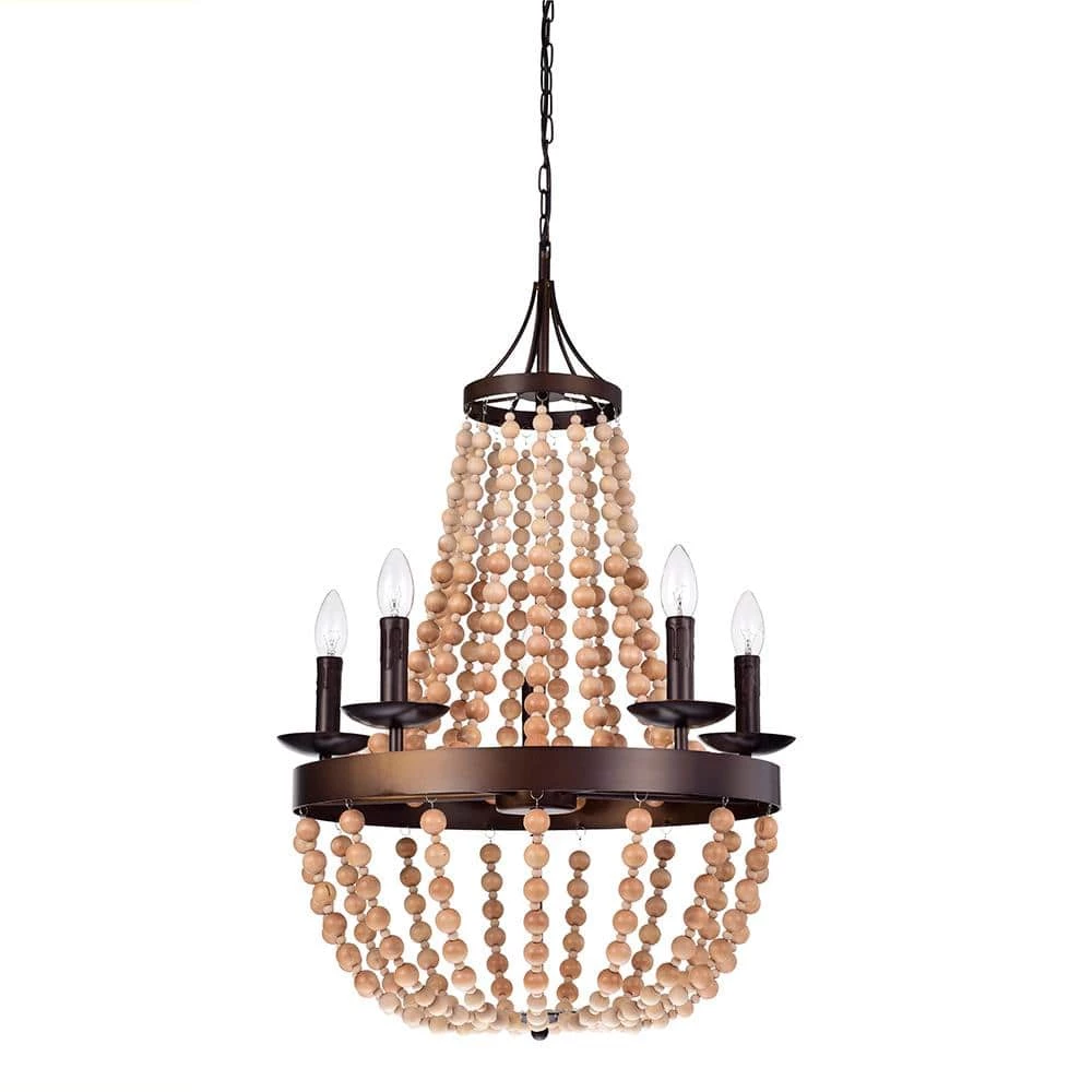 This earth friendly wooden bead empire chandelier is perfect for your modern home. The softness of the wood and rounded metal framing is a peaceful and relaxing design. This is wonderful as an entry way lighting as well as a central lighting piece in your dining room.