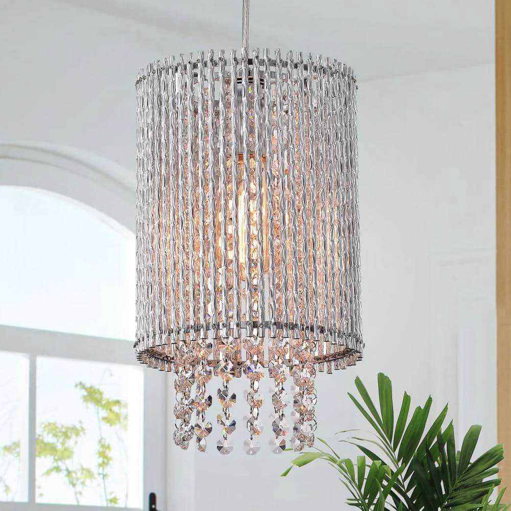 An exquisite chandelier that features a chrome finish and clear crystals that’ll bring a sparkle to any room. This will give your room a spectacular feel. Ambient light will lighten your room.
