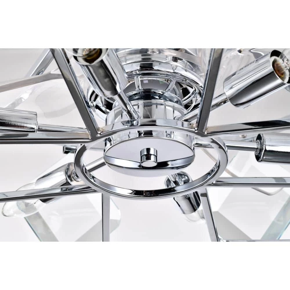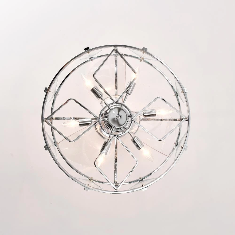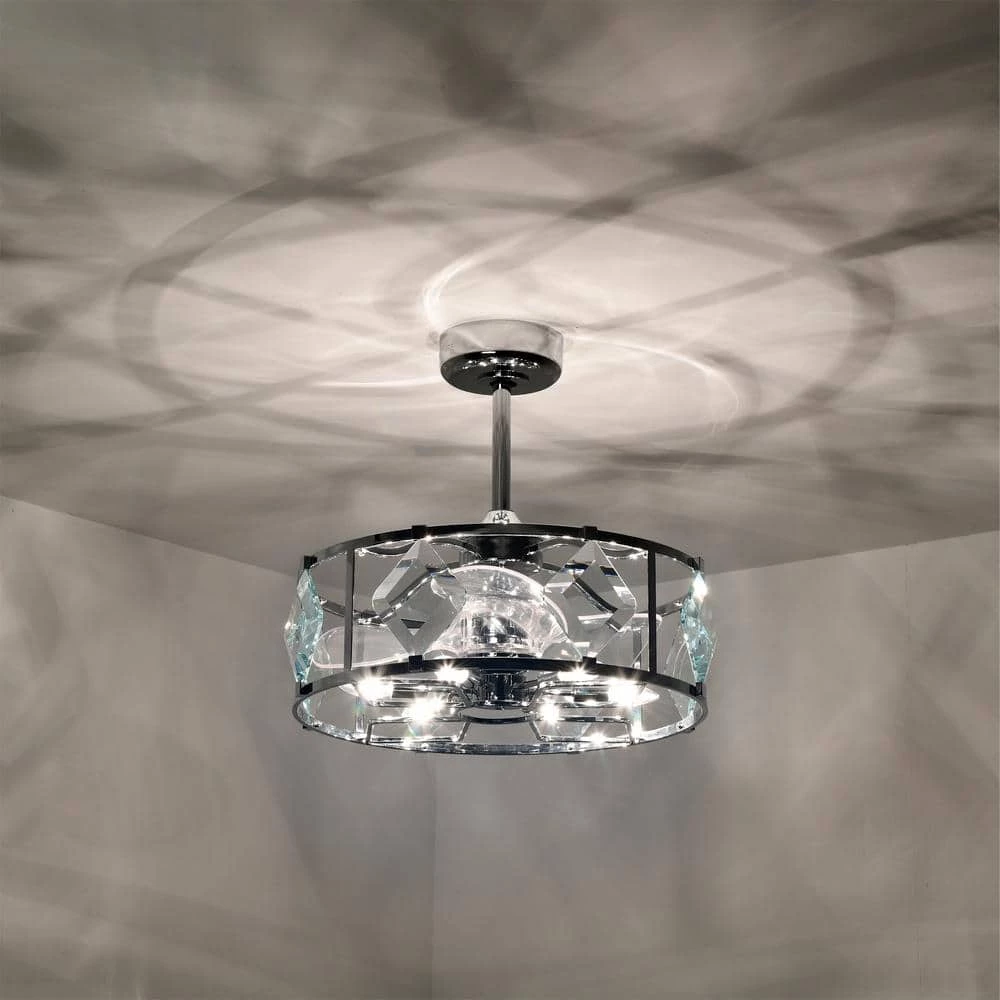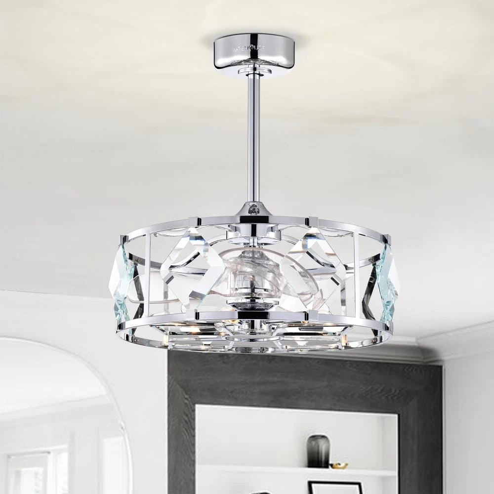 Looking to glamorize your home interior? Well, look no further with our 25-inch Chrome Dalya Ceiling Fan Chandelier. Our fixture features six (6) lights that are amplified by its crystal paneled shades and provides a breath of fresh air when in its presence. Included is a remote control that allows you to access these features and helps you choose between the six (6) airing options for your cooling comfort, with ease. Decorative during the day and decoratively functional at night, get the best of both worlds with our 25-inch Dayla Ceiling Fan Chandelier.