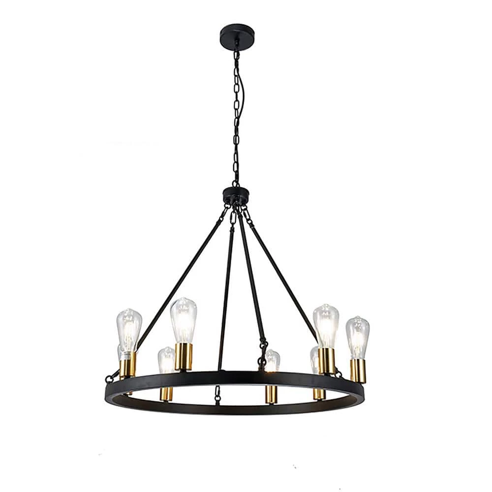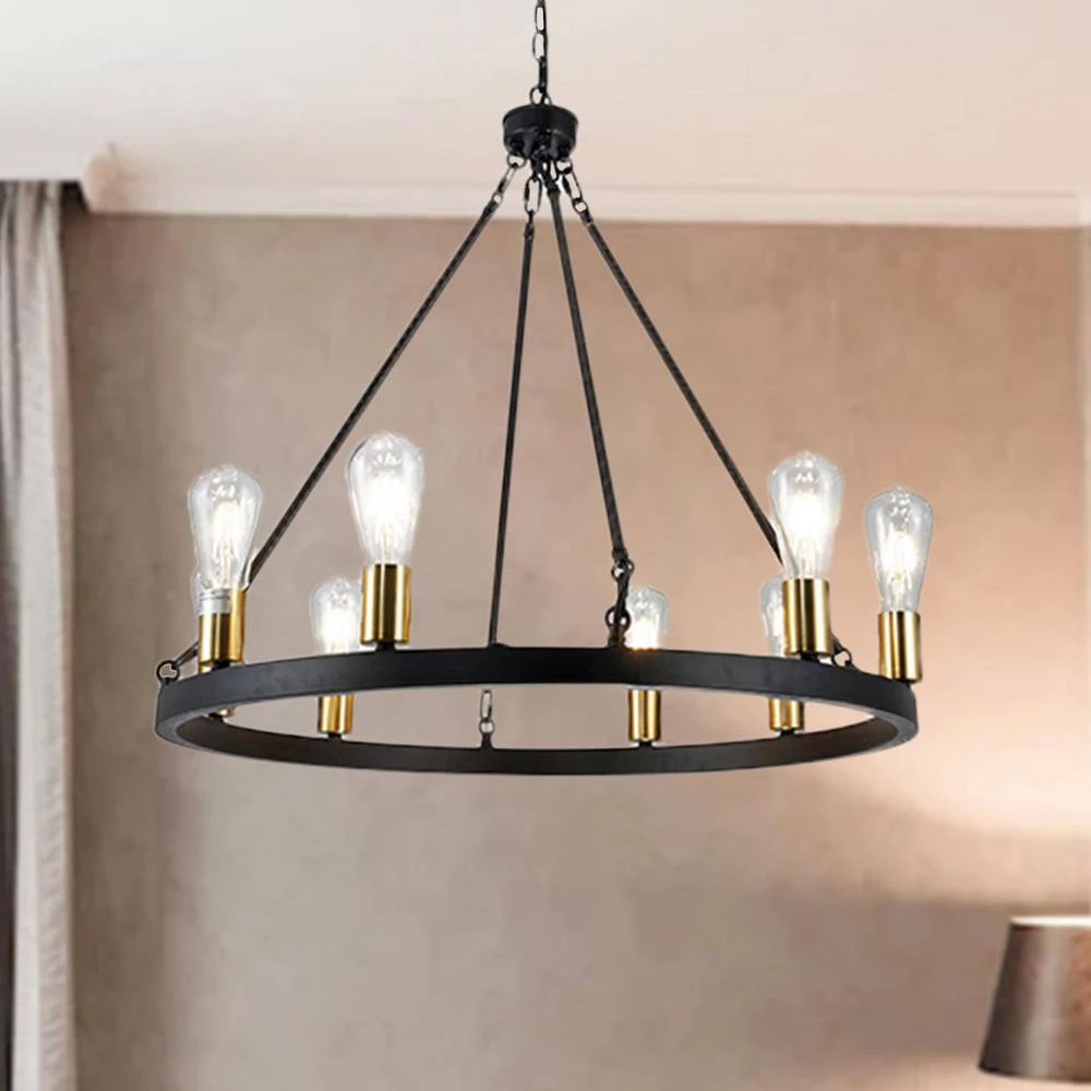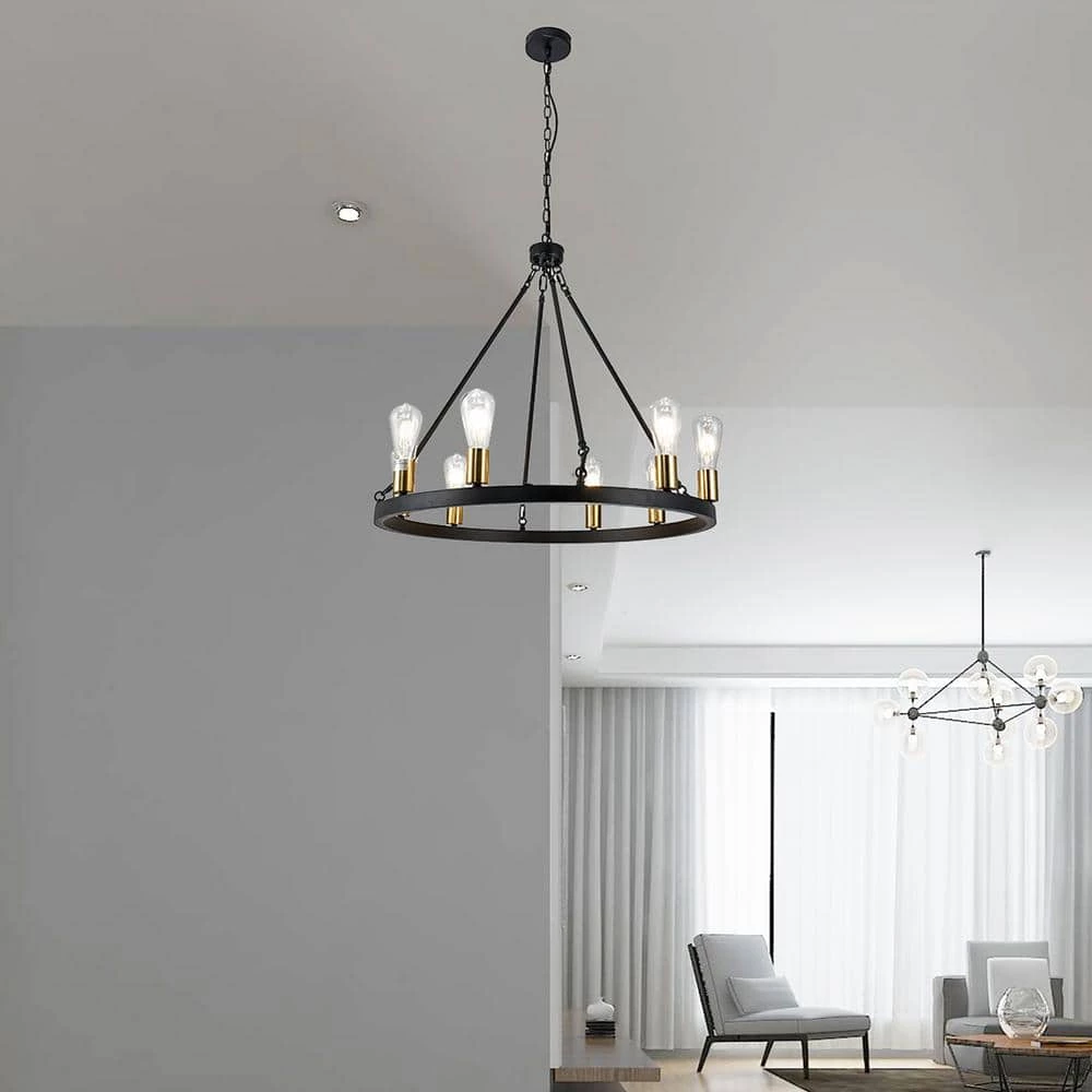 Style your evenings up with our 28 in. Matte Black Daryu Wagon Wheel Chandelier. Garnished with Polished Gold, your nights are bound to become the favorite part of your day as our fixture includes 8-lights that flairs up your environment and prepares you for tomorrow. Indulge in our 28 in. Daryu Chandelier by making it an addition to your home and allowing your dreams become reality.