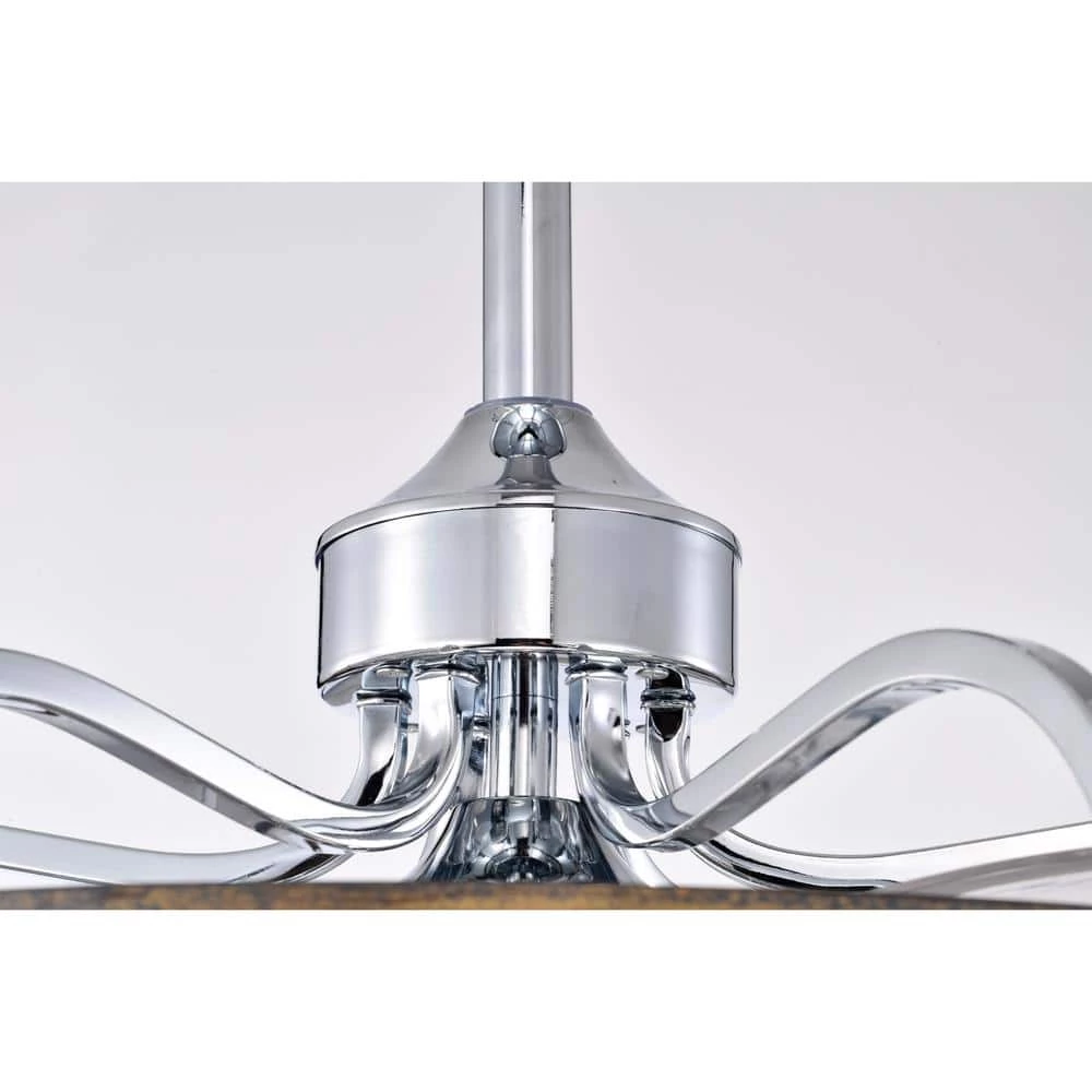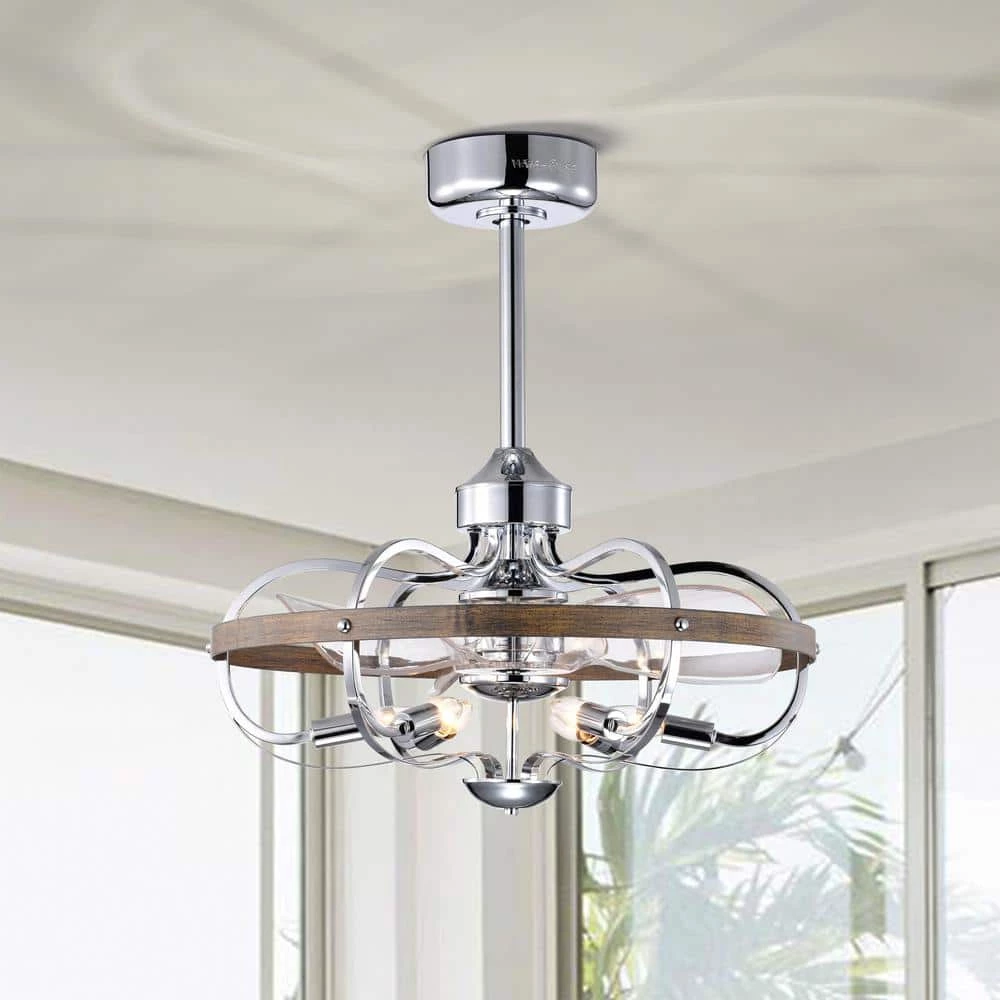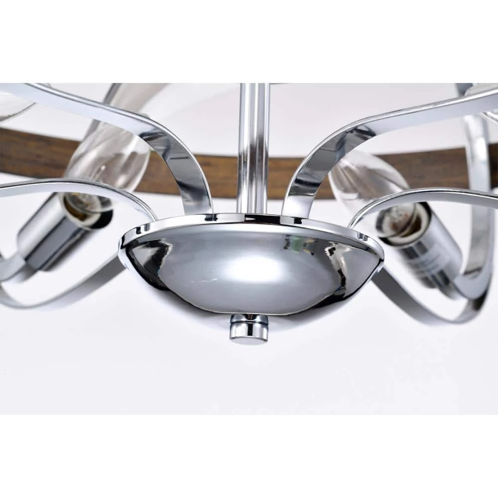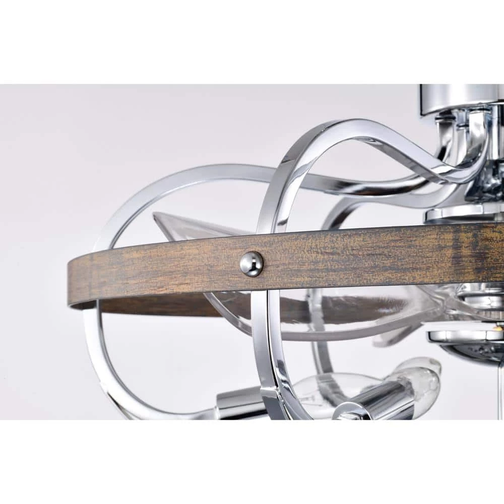 Introduce a modern farmhouse look to your home interior with our 24 in. Chrome Davina Ceiling Fan Chandelier. Finished in Chrome, this fixture includes three (3) clear blades housed in a unique shade garnished by Faux Wood Grain detailing. With six (6) airing abilities to choose from, you’re bound to find the right level of cooling comfort. Both decorative during the day and decoratively functional at night, get the best of both worlds with our 24 in. Davina Ceiling Fan Chandelier.