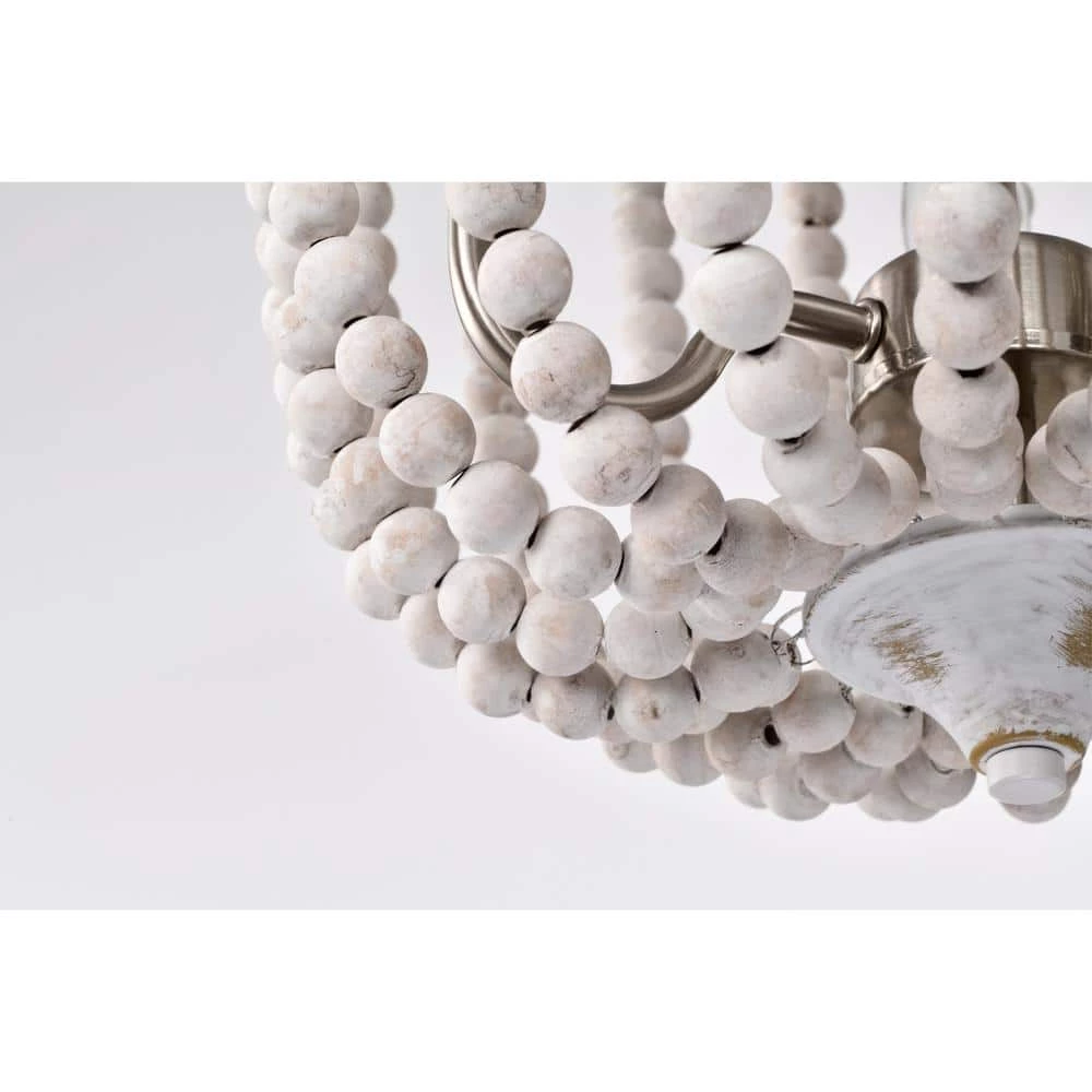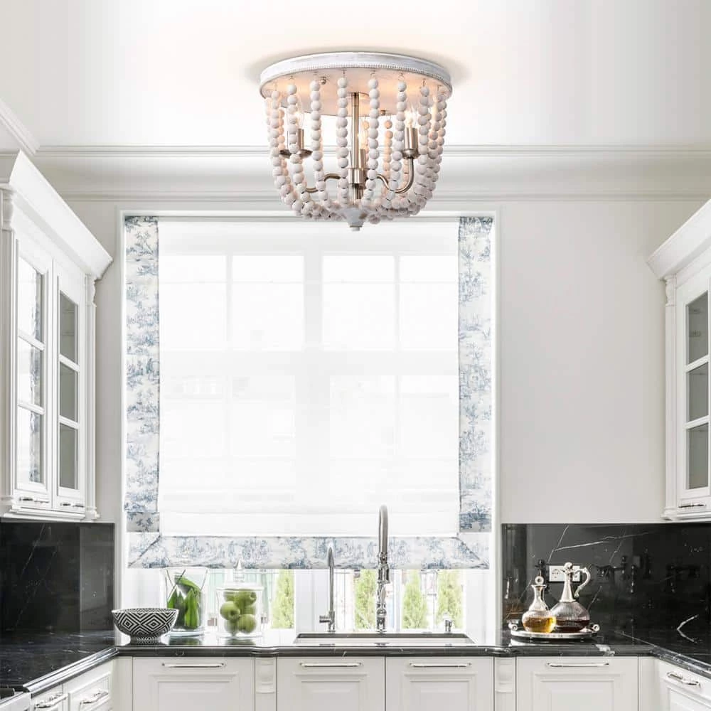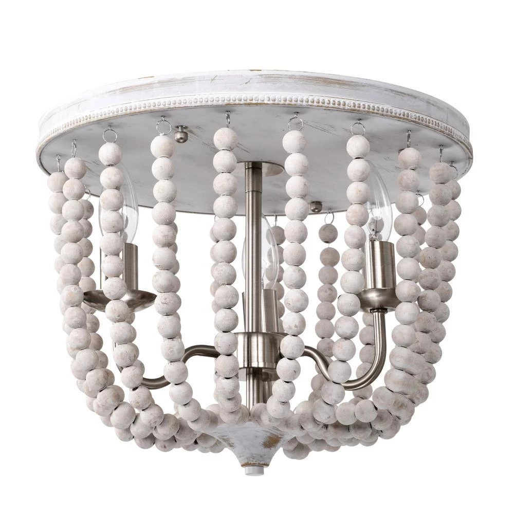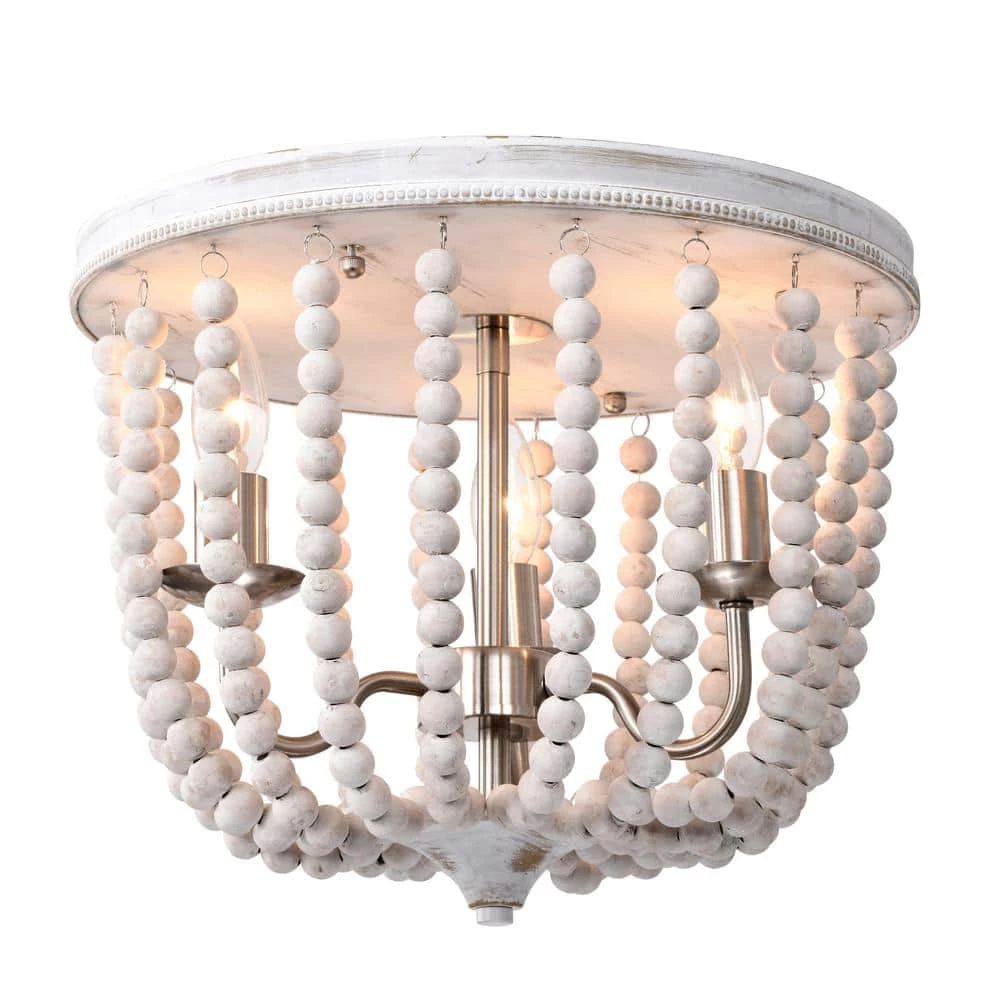 Decorate your home and provide a refreshing environment with our 14 in. Weathered White and Matte Gold Dawid Flush Mount Ceiling Light. Our fixture features a beaded bowl-shape shade that works its magic during the day and night. With a three (3) light set-up, both the shade and lights come together to create a breath of fresh air experience to your living space. So, treat yourself to the best of both worlds with our 14 in. Dawid Flush Mount Ceiling Light.