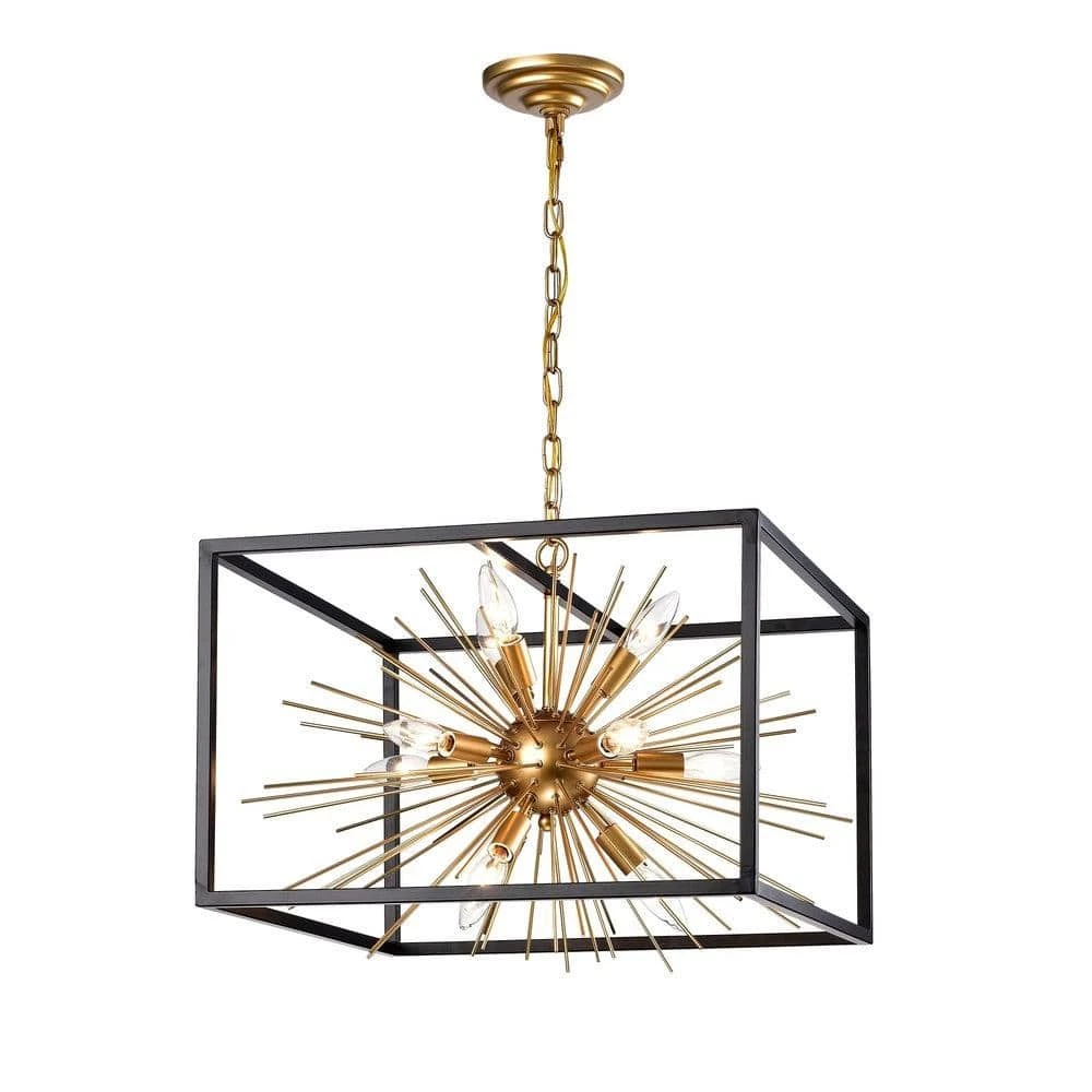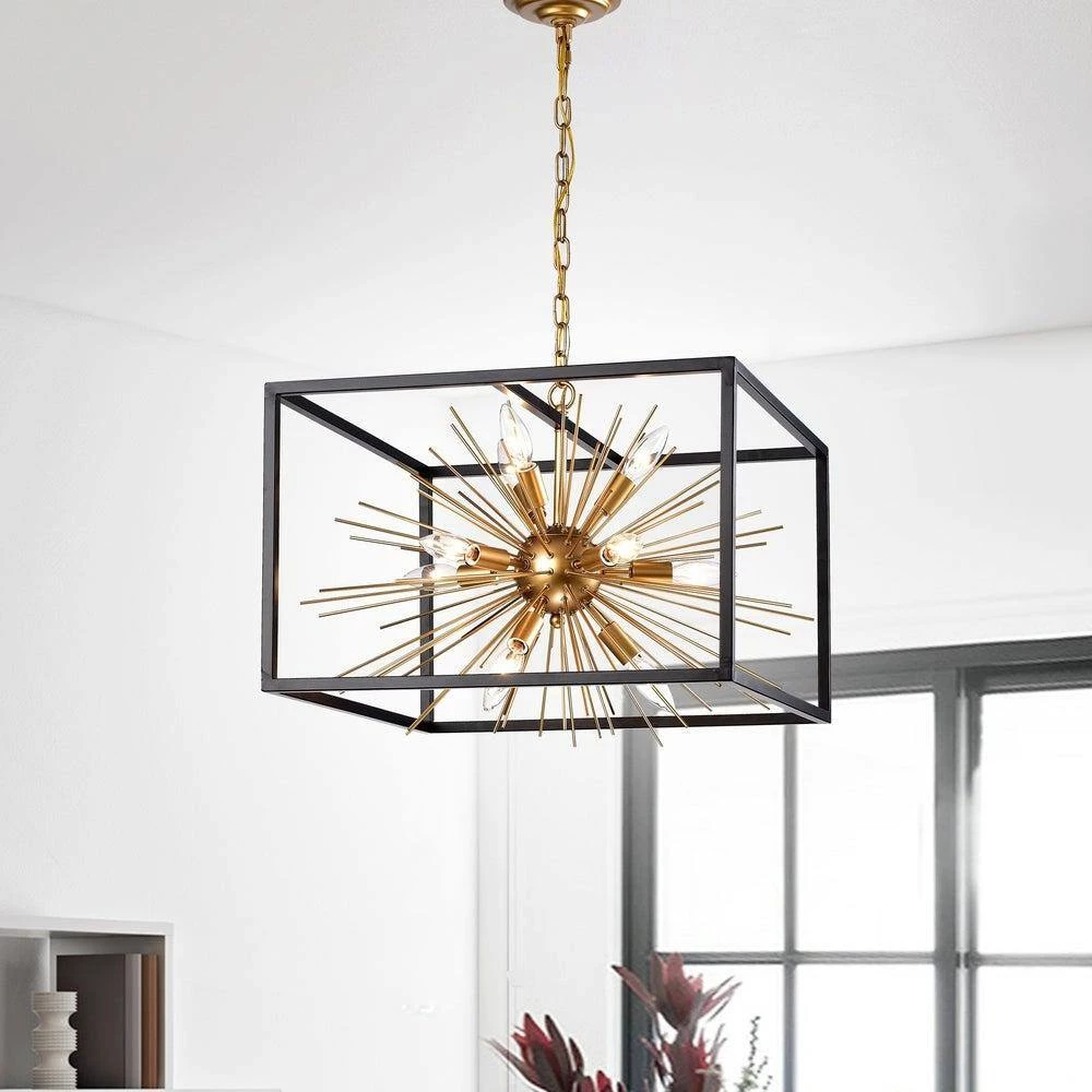 Make a statement in your household with this 11-light sputnik chandelier. The sputnik design is housed in a matte black metal frame while the bulbs are surrounded by metal rods. This abstract design along with the brass finish makes this fixture ideal for homes with modern and contemporary decor.