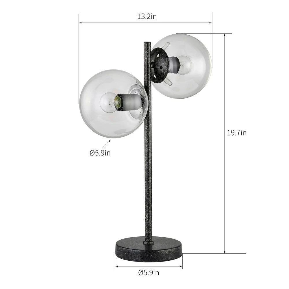 2 clear glass globes are positioned asymmetrically on a single metal dowel stand combine for an elegantly modern look. Complete with 2 included Edison Style light bulbs. An industrial look that you can easily put wherever you want.