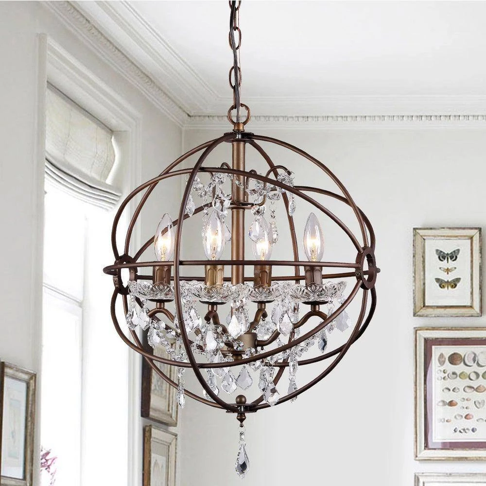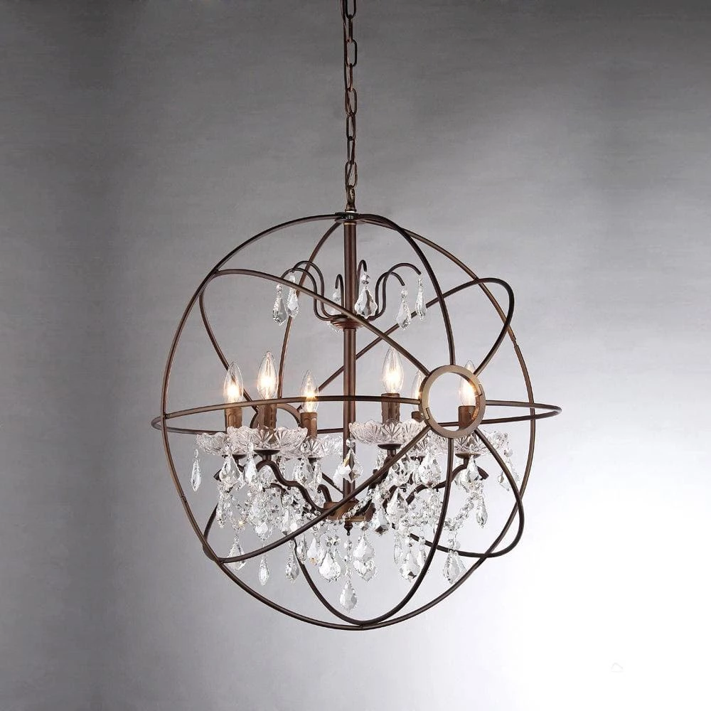 Create an air of sophistication in your room of choice with this antique bronze and crystal sphere chandelier from Edwards. Replace your old lackluster fixtures with an elegant new approach to lighting. Sparkling crystals and antique accents enhance your living space with a luxurious feel. This inspiring ornate lamp has a distinctive sphere design that complements a variety of decor. A metal construction houses silights which not only illuminate your living space but also reflect upon the gorgeous hanging crystals to beautify the room. This luxurious light solution radiates evenly making it simple to brighten your room of choice. Multi-directional light evenly radiates through your room Metal and crystal materials make this a versatile fixture that is compatible with a variety of decor types Antique bronze finish is timeless.