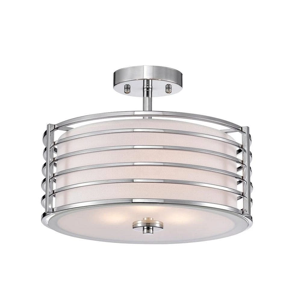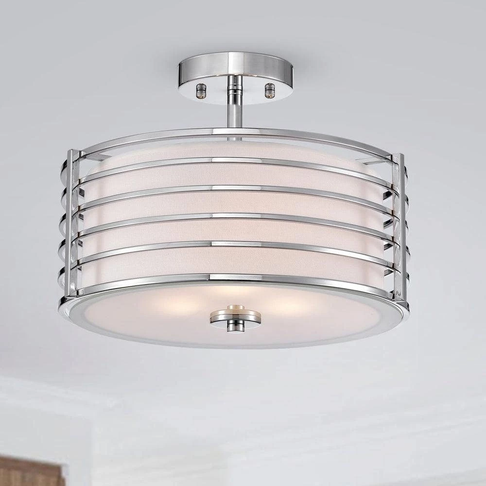 This beautiful semi-flush mount chandelier is perfect in a modern and contemporary vibe. The disk-shaped surrounded to drum shade with high quality plastic will add the perfect amount of elegance to your perfect home. This item also is chrome finished and hardwired attribute power source.