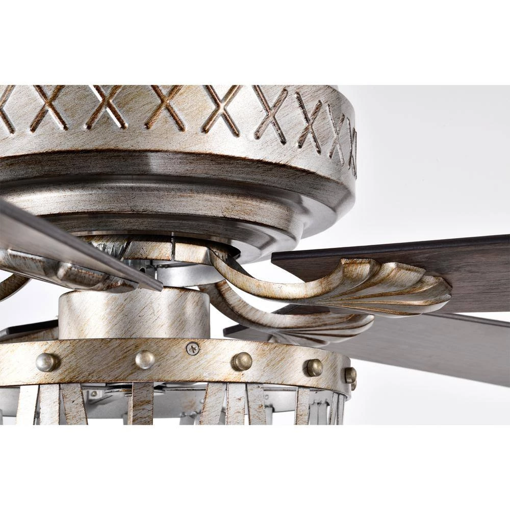 Decorate your home interior and introduce a breath of fresh air with our 52 in. Antique Silver Emani Ceiling Fan Chandelier. Our fixture features three (3) lights that are housed in a unique shade that has an alternative look when the lights are activated. The three (3)-speed reversible motor includes a remote control to insure you’ll find the exact setting for your cooling comfort. Both decorative during the day and decoratively functional at night, get the best of both worlds with our 52 in. Emani Ceiling Fan Chandelier.