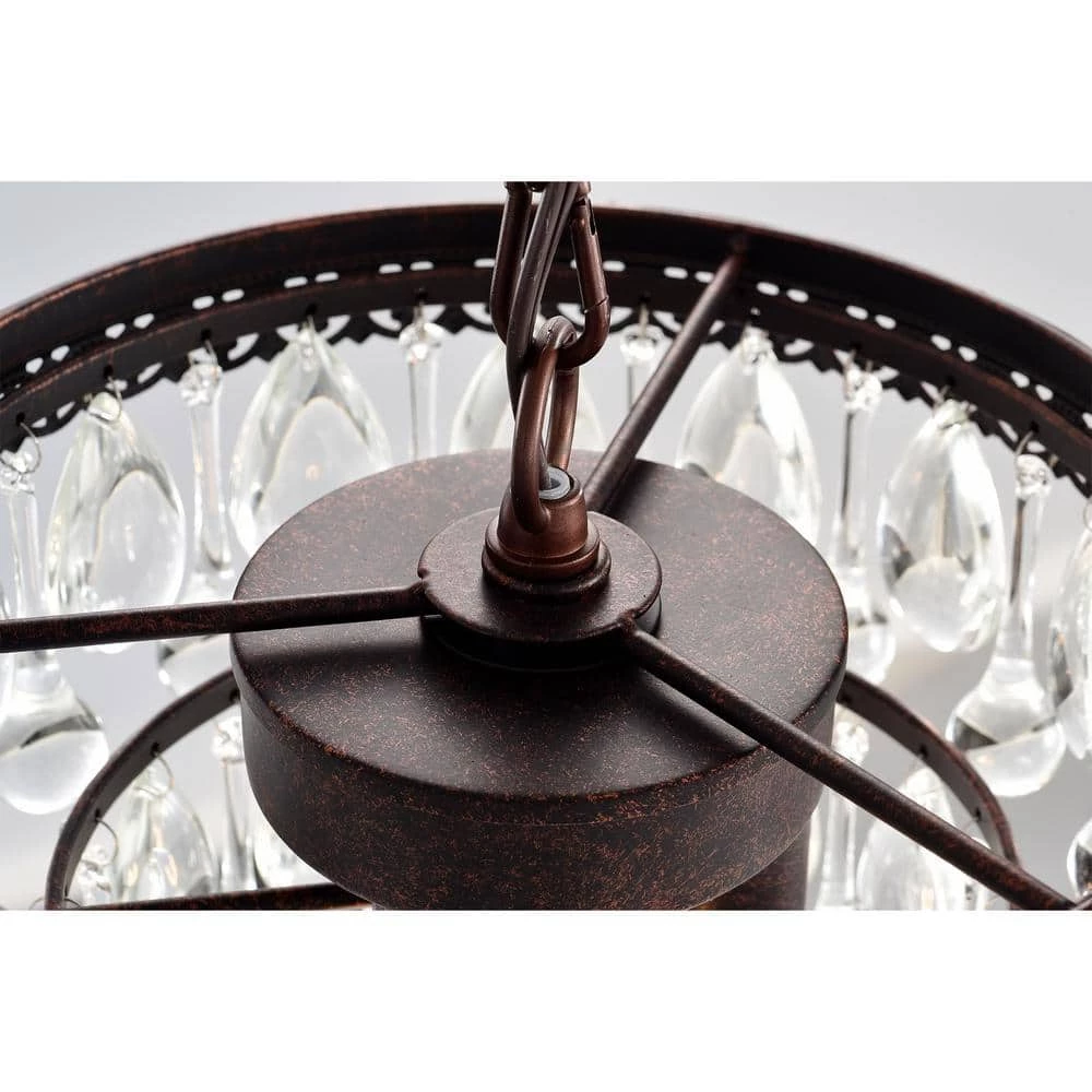 Brighten your household with this Antique Copper 3-light chandelier. The round base with antique copper finish features a multitier of intricate glass drops. The multidirectional brilliance and the antique copper finish of this chandelier creates both a rustic and luxurious ambience in your dinning room, or living room.