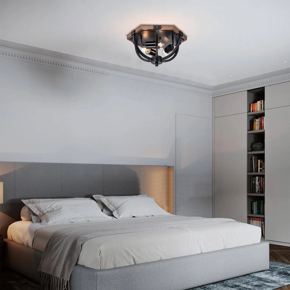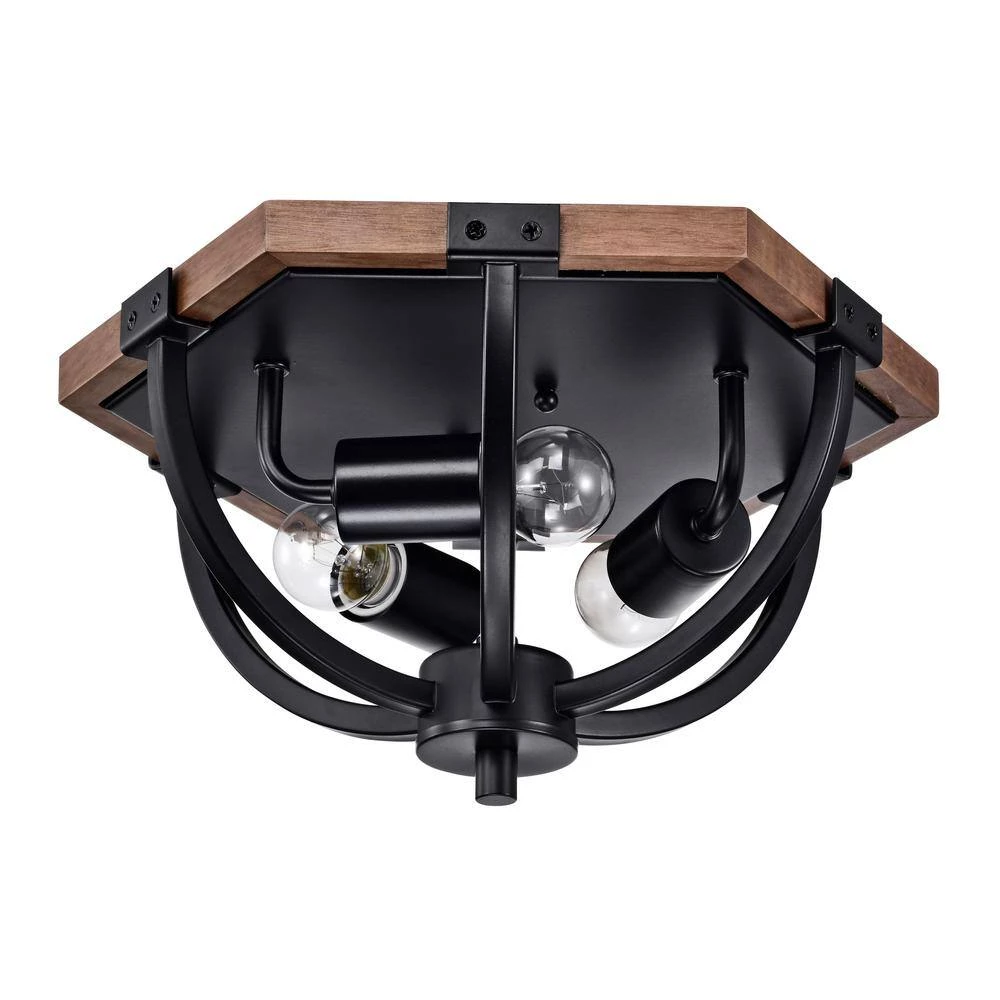 Add a unique and modern look to your home with our 14 in. Matte Black and Faux Wood Grain Fiona Flush Mount Ceiling Light. Our fixture features three (3) lights and are housed in a beautiful open-style cage shade that is finished in Matte Black to give the design a sleek and stylish finish. Decorative during the day and decoratively functional at night, get the best of both worlds with our 14 in. Fiona Flush Mount Ceiling Light.