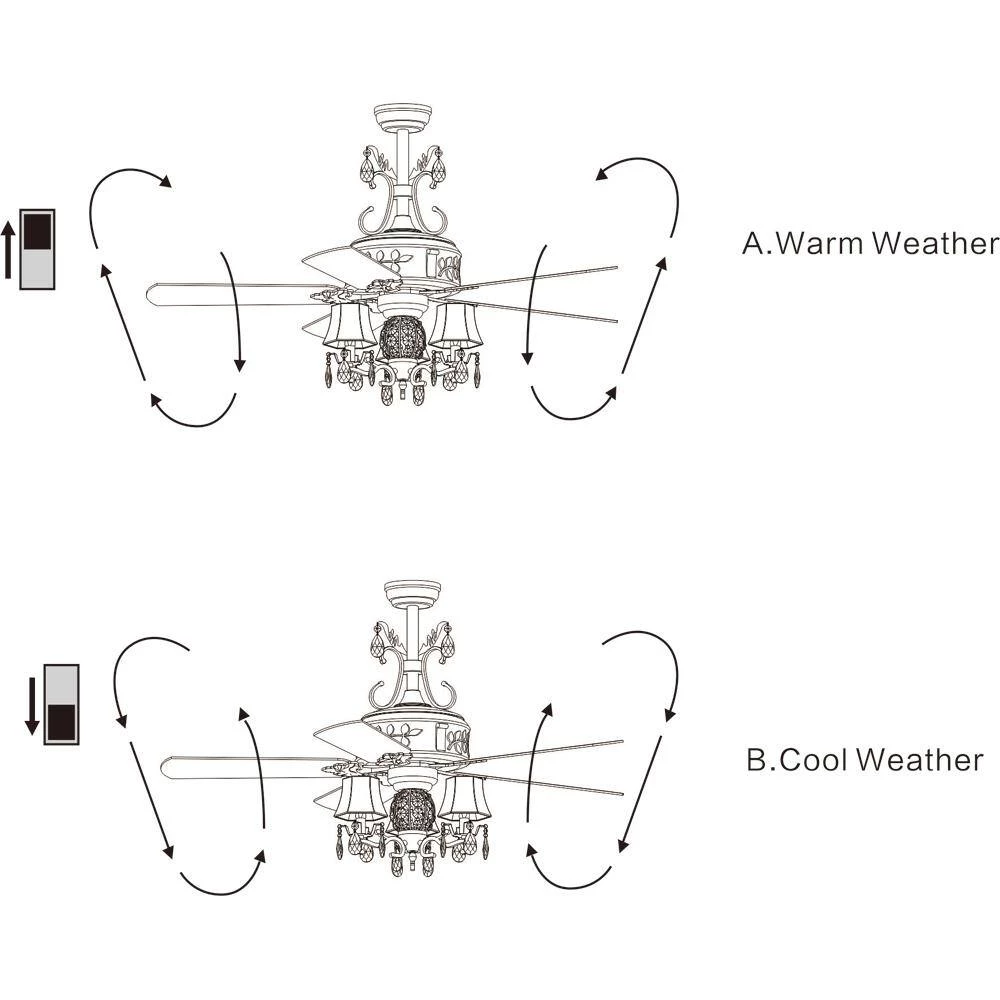 This exquisite piece transfroms an old world design into a modern efficient Remote Controlled Ceiling Fan. High quality ultra clear crystal pendants embellish throughout. It uses 5 wood blades for great air movement. Three separately shaded lamps and a crystal encrusted ball goes well together with the motor that is reversible to control the best flow for the season.
