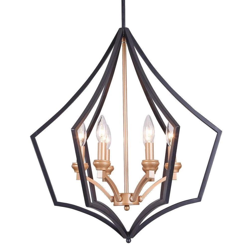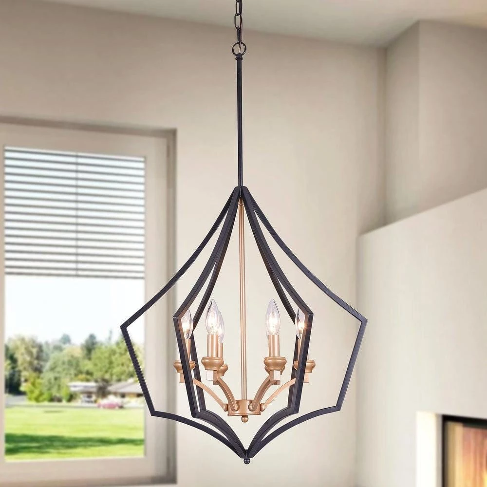 Introduce an elegant appeal to your home with this 6-light chandelier. Finished in matte black and gold/bronze, the geometrical iron frame inspired from contemporary designs also demonstrates a perfect mix of form and function. This fixture includes 6-light bulbs that cast a vibrant glow over your living or dining room.