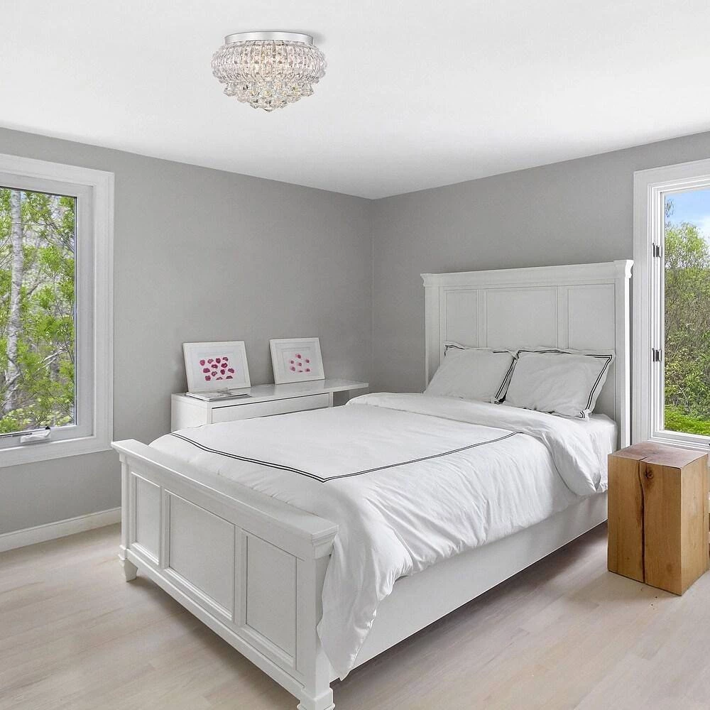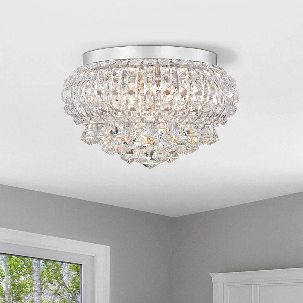 Add some elegant sophisticated lighting with this decadent, shimmering chandelier over your living room or dining room table. With a chic silver finish, this flush-mount treasure will scatter light elegantly around the room through its dazzling crystal design. The 4-light design ensures ample illumination.