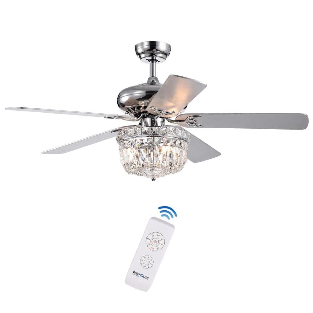 This Chandelier Ceiling Fan offers that functionality along with a refined and dignified style. A lovely traditional piece for your most cherished spaces. The high quality crystal bowl is paired with an all silver finish in the wooden blades and the metal housing.