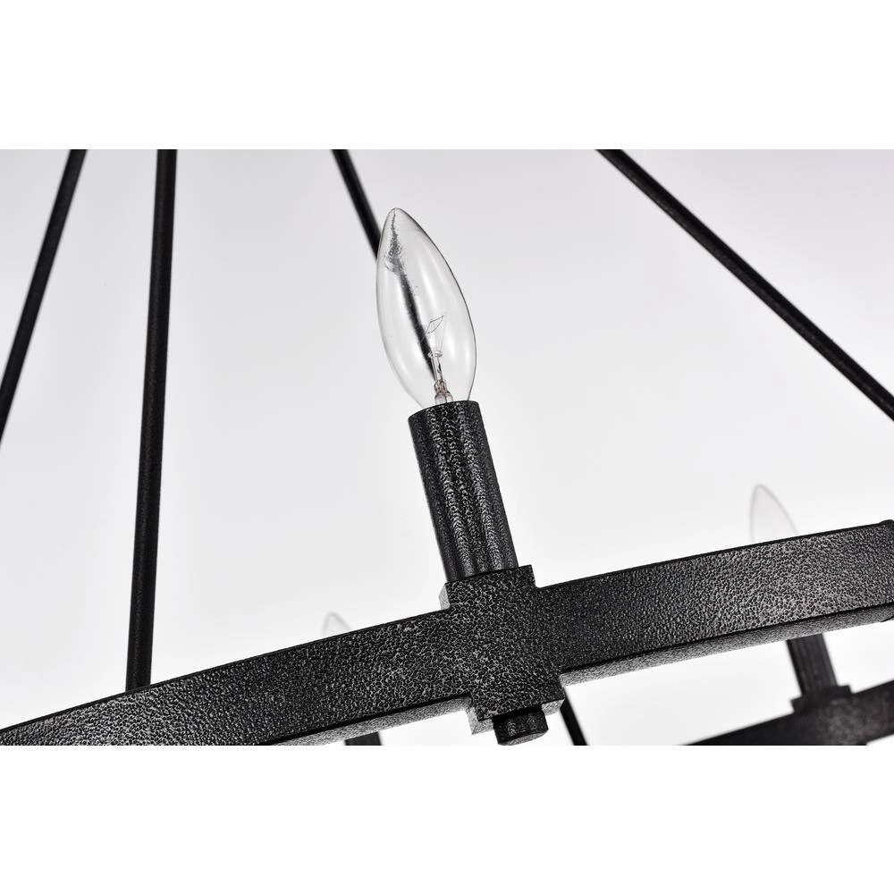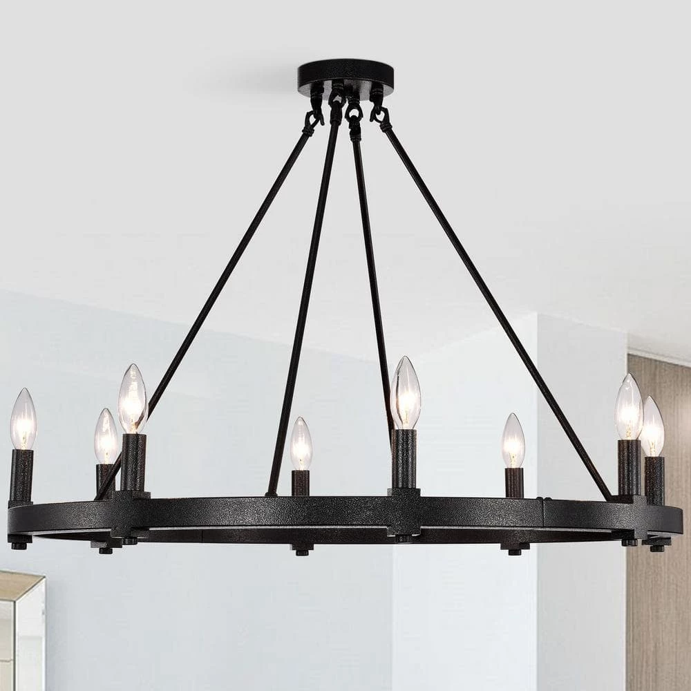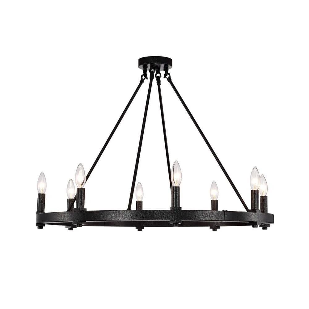 Crafted with subtly elegant iron frames, this wagon wheel chandelier offers a striking industrial element perfect for contemporary living spaces. This lighting fixture has smith iron finish and is able to support up to eight 25-Watt bulbs (not included). with the right balance of ambiance and decor, the chandelier is a versatile piece of lighting that is sure to set the right tone in your home.