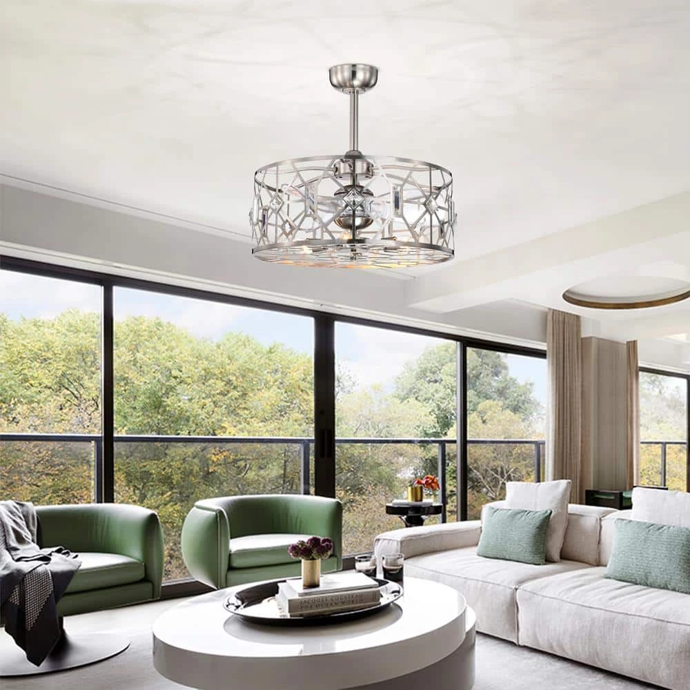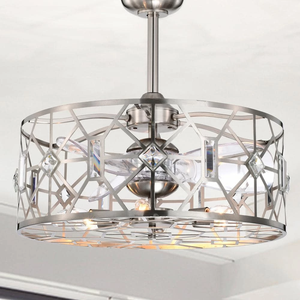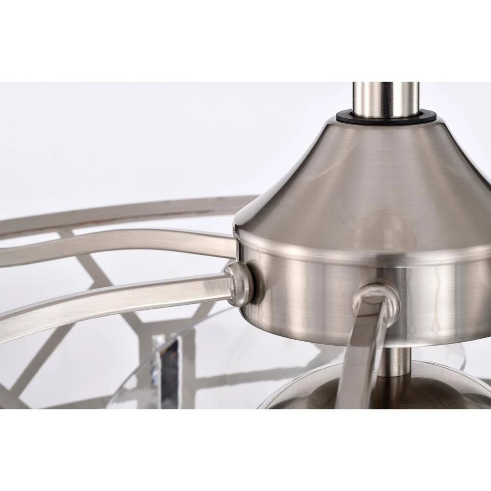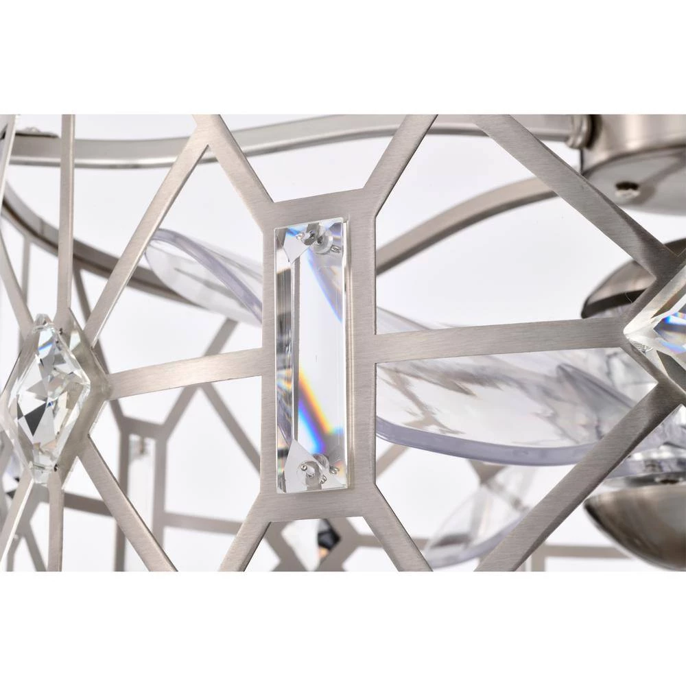 Looking to polish up your home interior? Well look no further. Our 24 in. Satin Nickel Gio Ceiling Fan Chandelier is just what you’re looking for. This fixture includes six (6) lights are housed in a crystal embedded shade that enhances every aspect of the chandelier. Included is a remote control that allows you to choose between the six (6) airing options with ease for your cooling comfort. Both decorative during the day and decoratively functional at night, get the best of both worlds with our 24 in. Gio Ceiling Fan Chandelier.