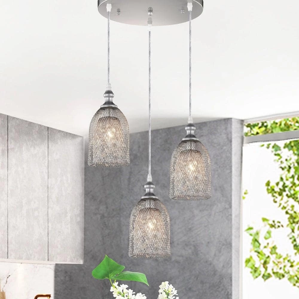 This 3-light pendant is perfect for homes with industrial or modern home decor. The 3-lights hang from a 13 in. circular canopy. The seeded shades curve completely inwards to create a double layer appearance. The inner wall is accented with beautiful crystals adding a touch of glam to this fixture.