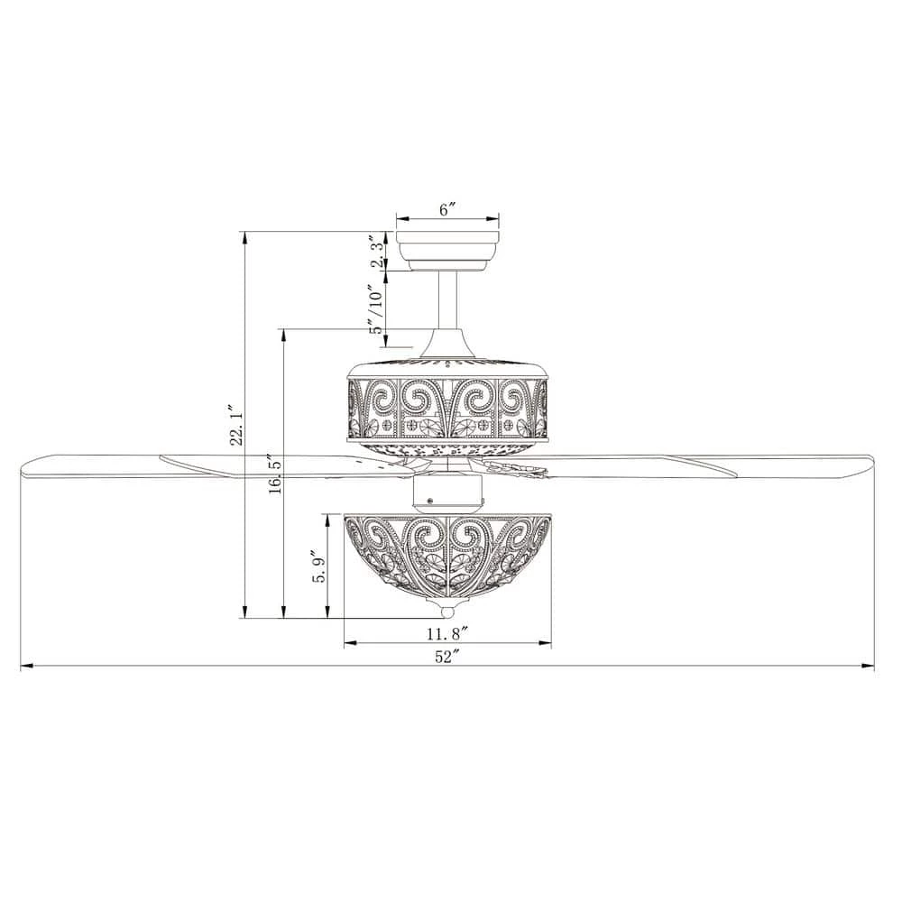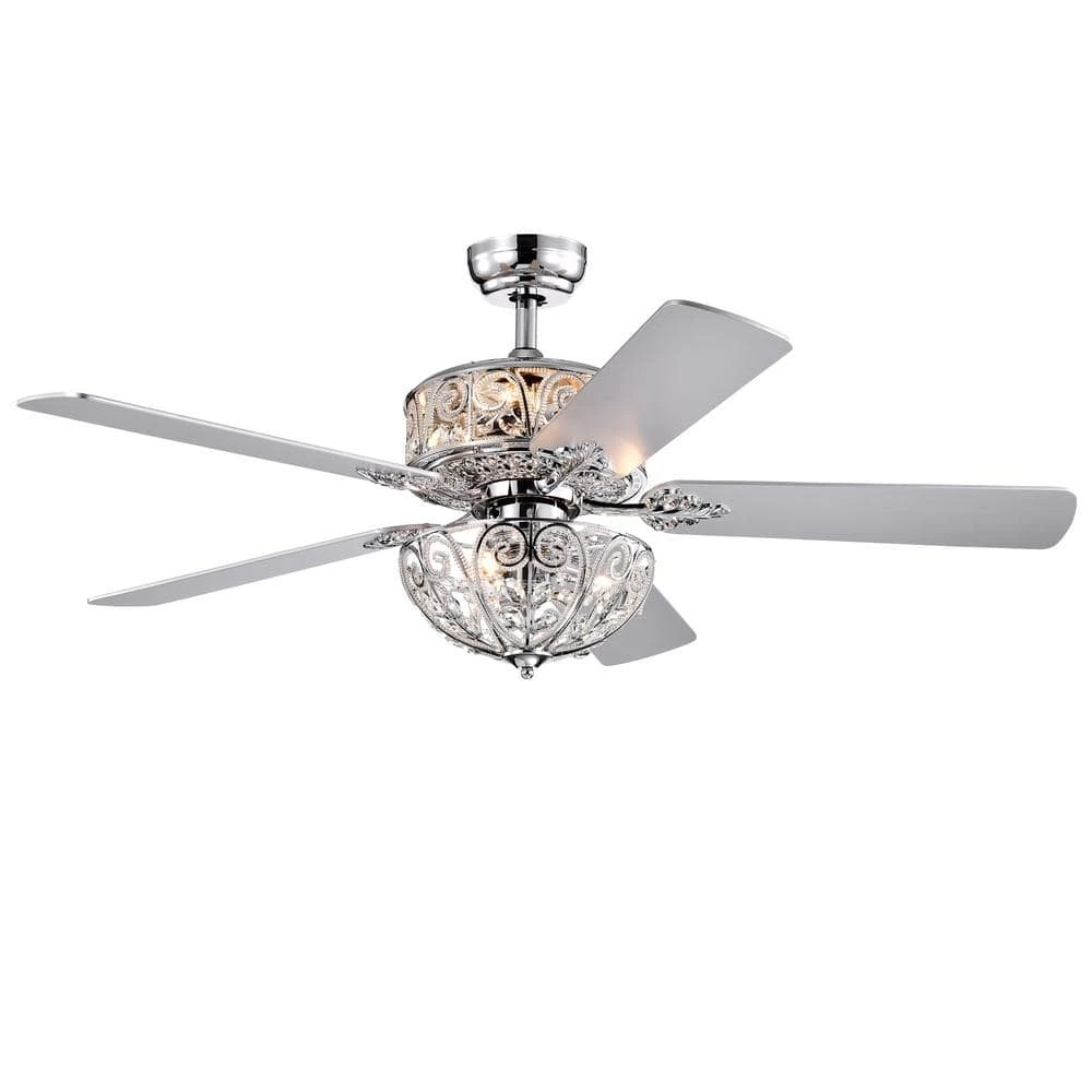 This lighted Remote Controlled Ceiling Fan with a luxurious scroll chandelier is the perfect answer. Both upper and lower lighted shades can be toggled through 3 different light combinations to capture the right mood. 6 total lights give excellent illumination. Remote controlled for your cooling convenience.