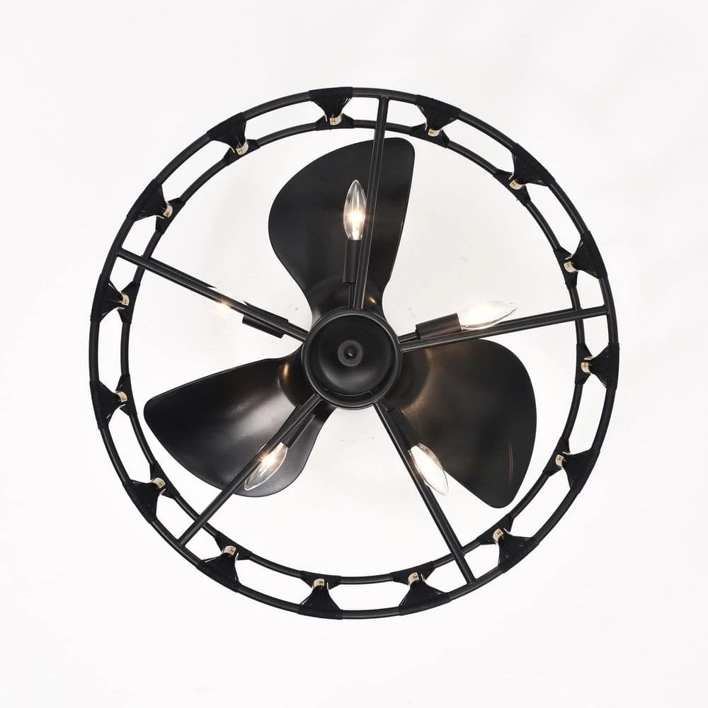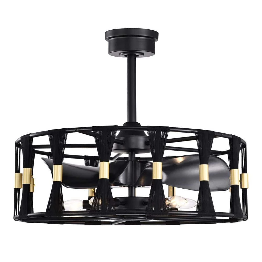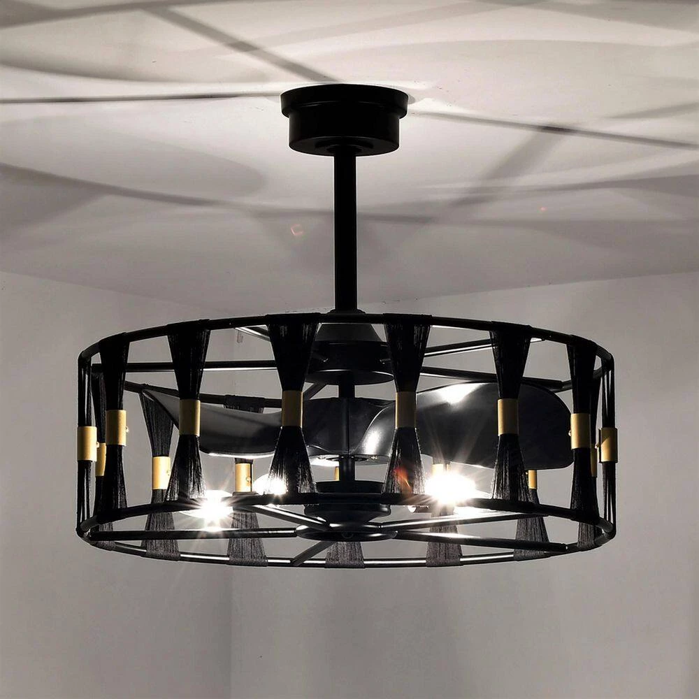 Treat your home to an upgrade that’s both decorative and functional with our 25 in. Matte Black Helle Ceiling Fan Chandelier. Our fixture features five (5) lights, 6-fan speeds, and a royal designed shade that carries hints of brass and Black fabric to bring it all in together. Take in a breath of fresh air after a long day when you step into your home and see our 25 in. Helle Ceiling Fan Chandelier.
