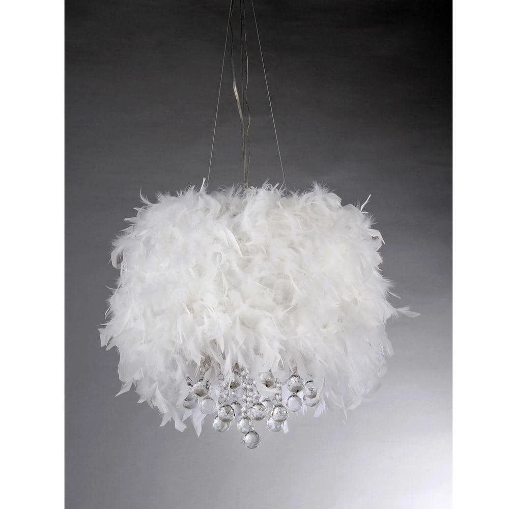 Add some perkiness with a touch of elegance in your home with our new Iglesias 3-Light Chrome Pendant Light. Show your unique taste with this pendant featuring three lights glamorously placed under a curtain of feathers and crystals. A chrome finish ensures that this indoor pendant can bring light into a variety of decors.