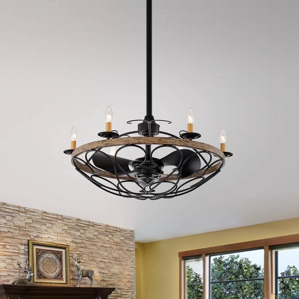 This unique lighted fandelier type ceiling fan makes your place cool, elegant but an eye-catching piece. The said item is matte black with imitation wood grain finished with features of the 6 candelabra lights emit excellent illumination for any type of room. The quantity of the blade is 3 with color black on both front and back side.