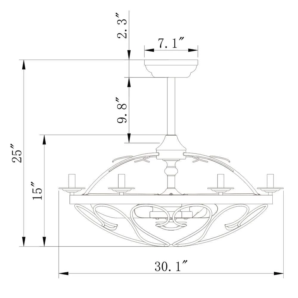- Overall Dimensions: 30.1 in L X 30.1 in W X 25 in H