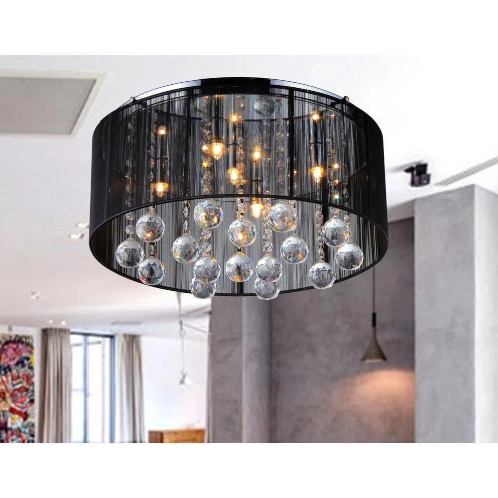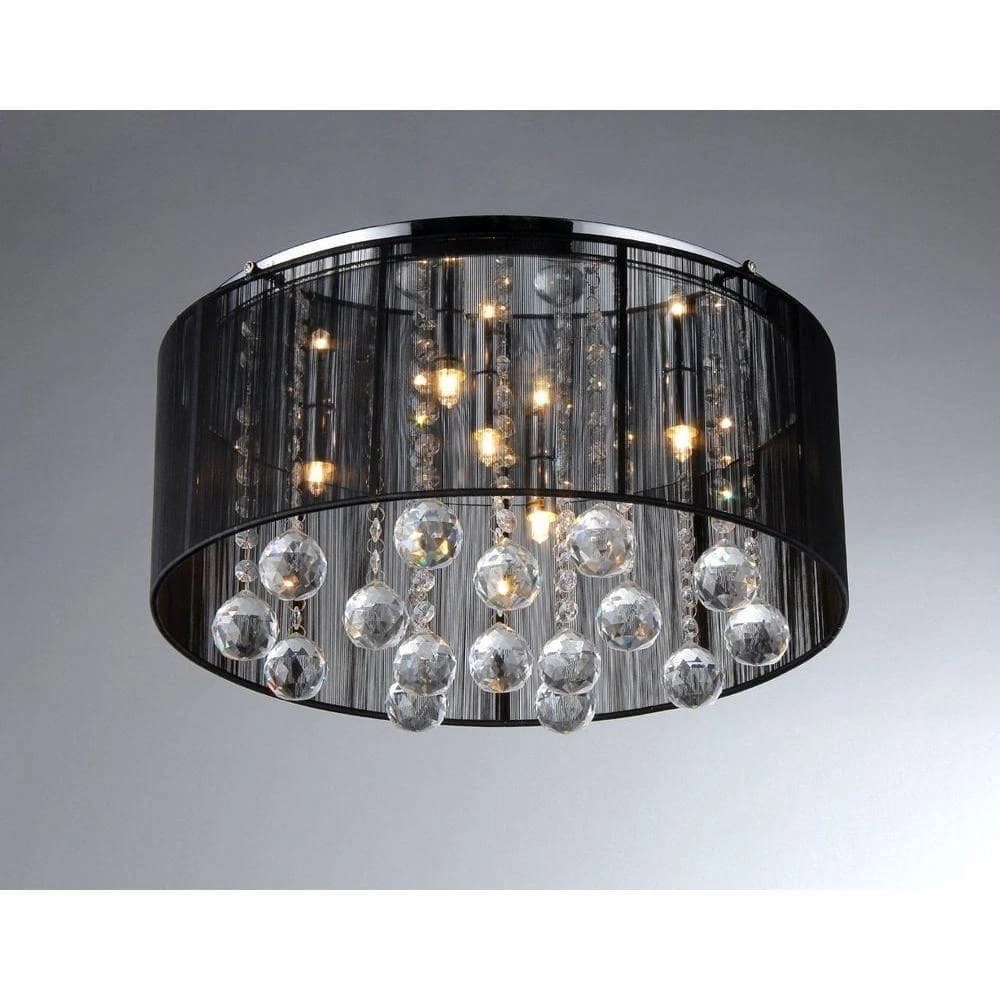 The Jasmine Crystal Chandelier 8 in. Ceiling Light offers an elegant black shade with clear tone crystal cut glass and silver chrome finish which perfectly blends to complete the look. The Six 40-Watt candelabra illuminate your room with warm and sophisticated lighting. Furnish your home with a magnificent innovative design of fine crystal art glass.