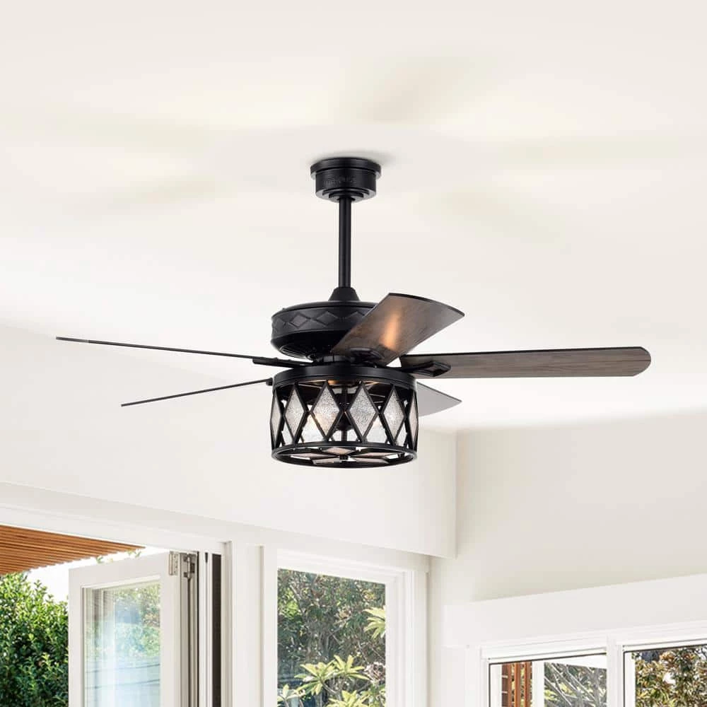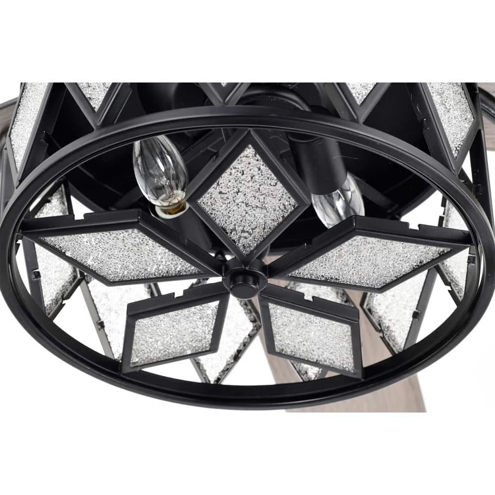 Enjoy your evenings a little more with our 52 in. Matte Black Jescha Ceiling Fan Chandelier. With two (2) lights housed in a prismatic paneled shade, allow your home to indulge in our fixture during the day and night. Included is a remote control that allows you to access these features and helps you choose between the three (3) airing options for your cooling comfort with ease. Turn everyday into a dream come true with our 52 in. Jescha Ceiling Fan Chandelier.