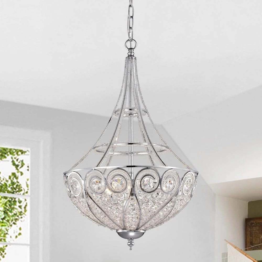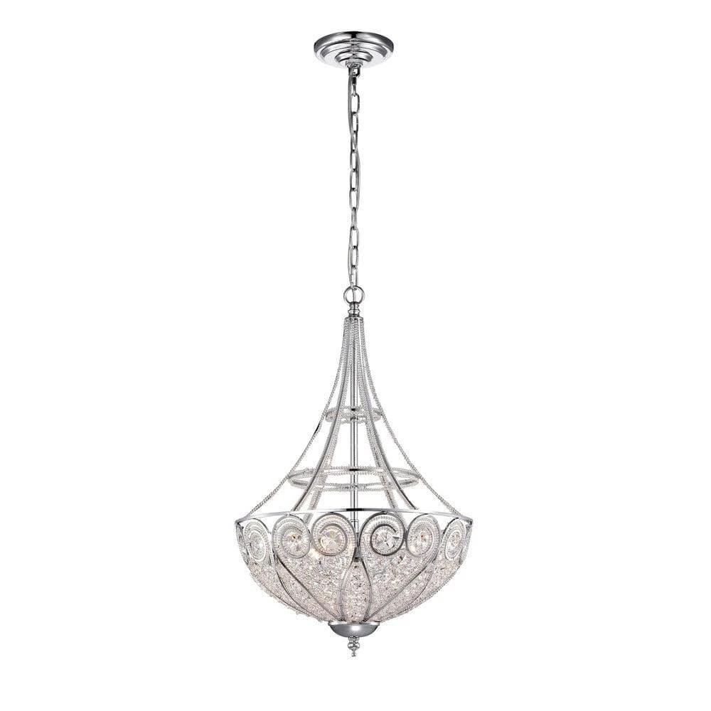 This chandelier gives timeless elegance that lends a special atmosphere in any home. Delivering a multi-directional illumination for any medium or large room. Multiple tiers of fine crystal catch and toss emitted light. This chandelier silhouette different arrangement of crystals.