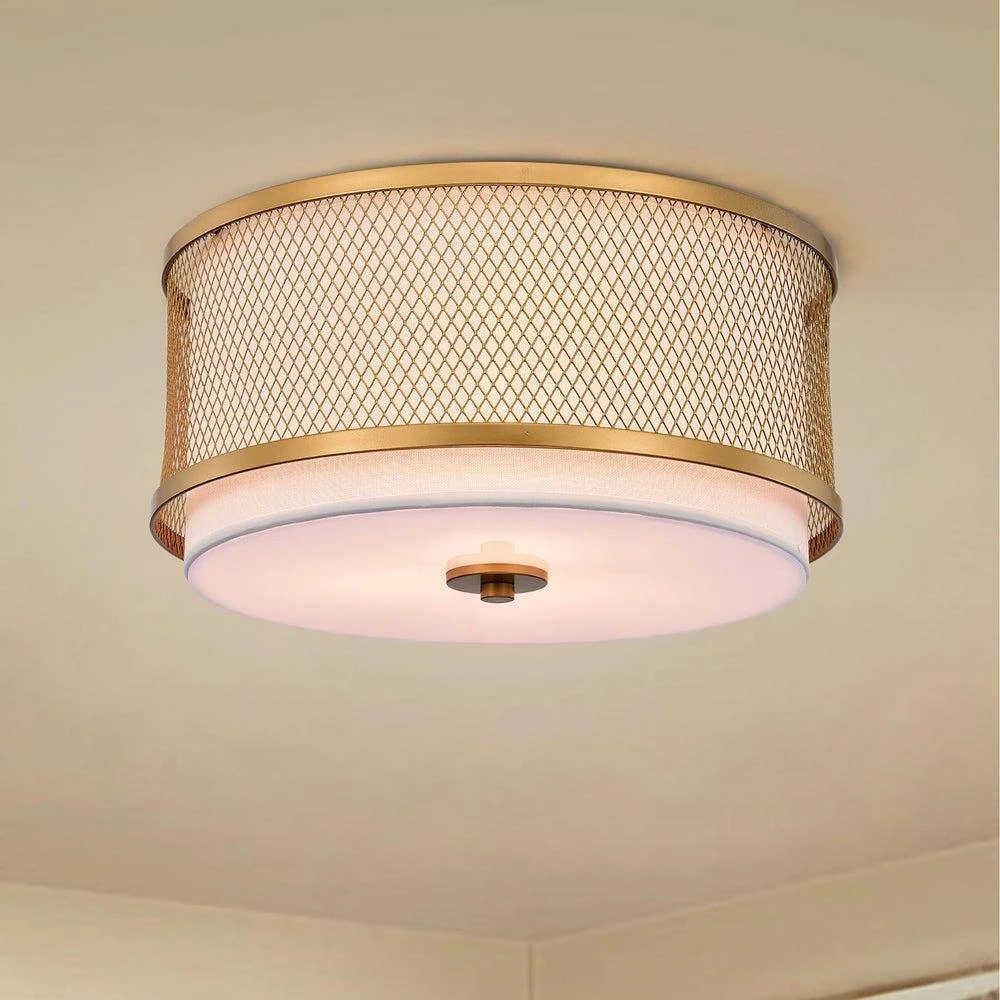 Let your home be simple but elegant place and more comfortable this chandelier gold and white finished hardware captures natural light and forms of semi shallow drum mesh style and stunning centerpiece even when not switched on. It is LED compatible and multi-directional light attribute and hardwired power source.