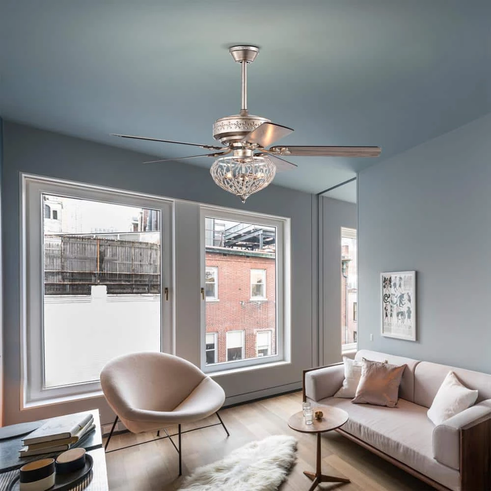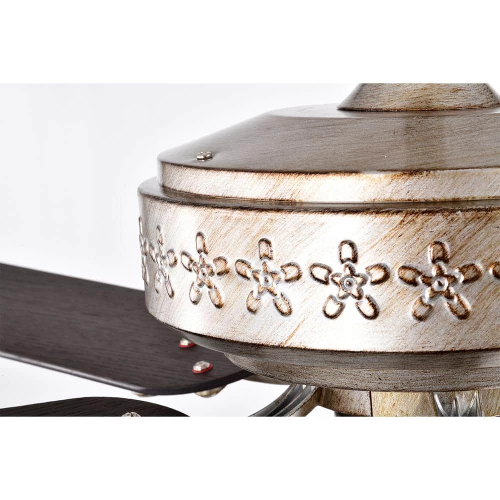 Enjoy the days you decide to stay home with our 52 in. Antique Silver Kannon Ceiling Fan Chandelier. Our fixture includes three (3) lights housed in a lovely designed shade which creates a warm and welcoming environment. Included is a remote control that allows you to access these features and helps you choose between the three (3) airing options for your cooling comfort with ease. Decorative during the day and decoratively functional at night, turn your home into a dream come true with our 52-in. Kannon Ceiling Fan Chandelier.