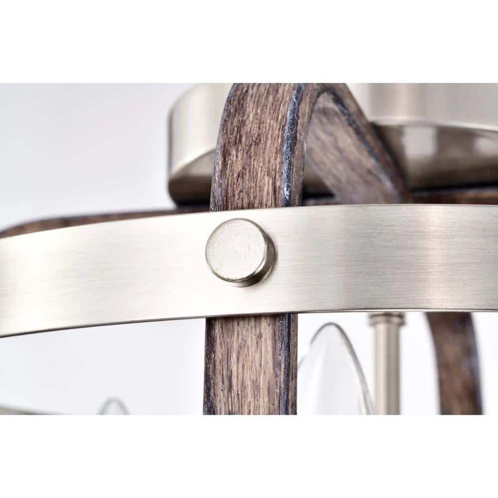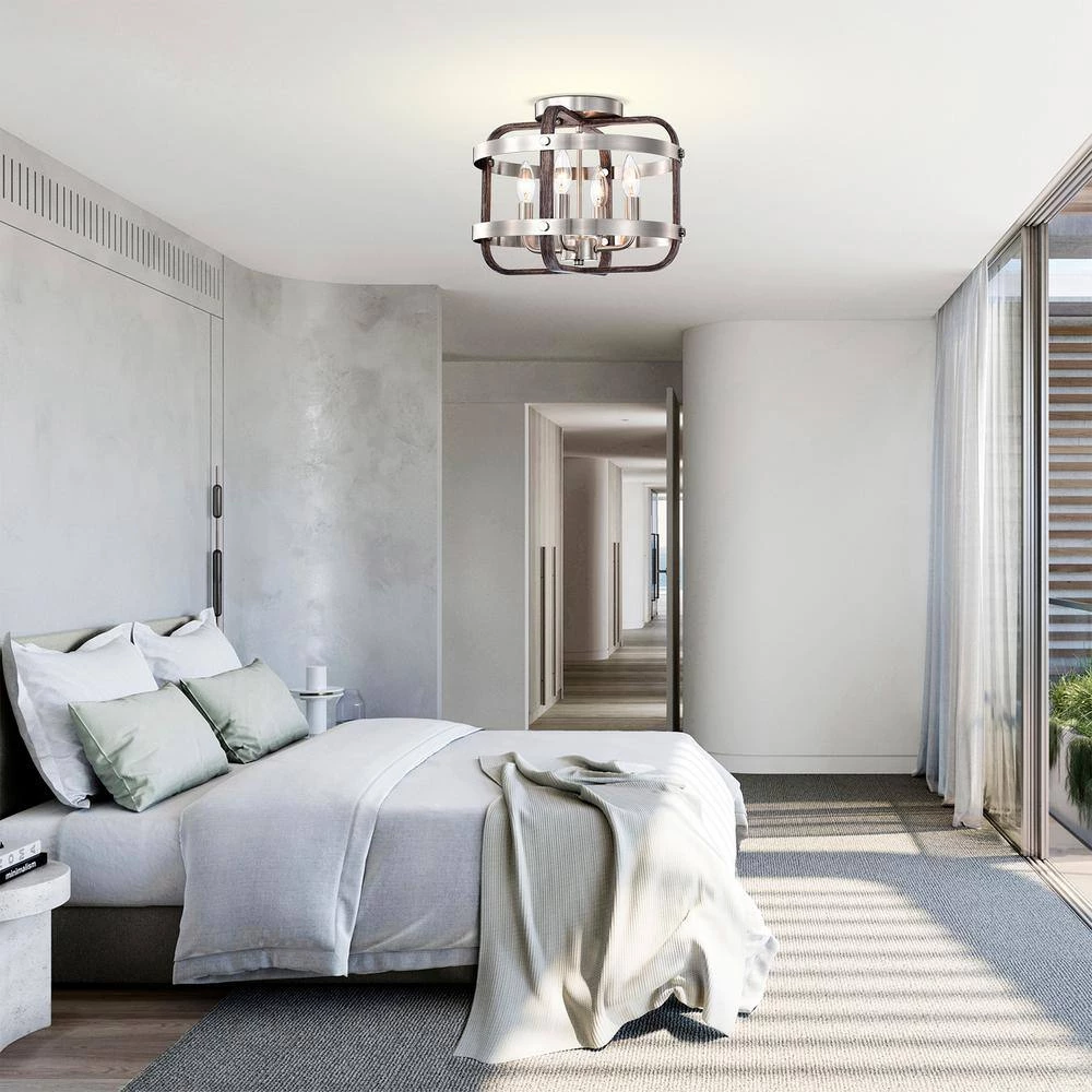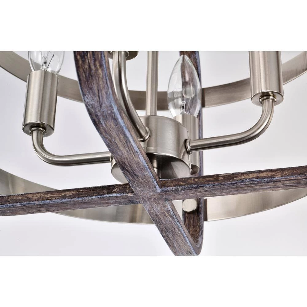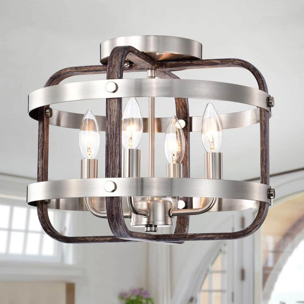 Enhance the quality time spent at your home with the help of our 14 in. Satin Silver and Faux Wood Grain Kasia Flush Mount Ceiling Light. Our fixture features four (4) lights, housed in an open-cage style shade and is garnished in a Faux Wood Grain finish that gives our fixture’s design the perfect balance of color tones. Decorative during the day and decoratively functional at night, get the best of both worlds with our 14 in. Kasia Flush Mount Ceiling Light.