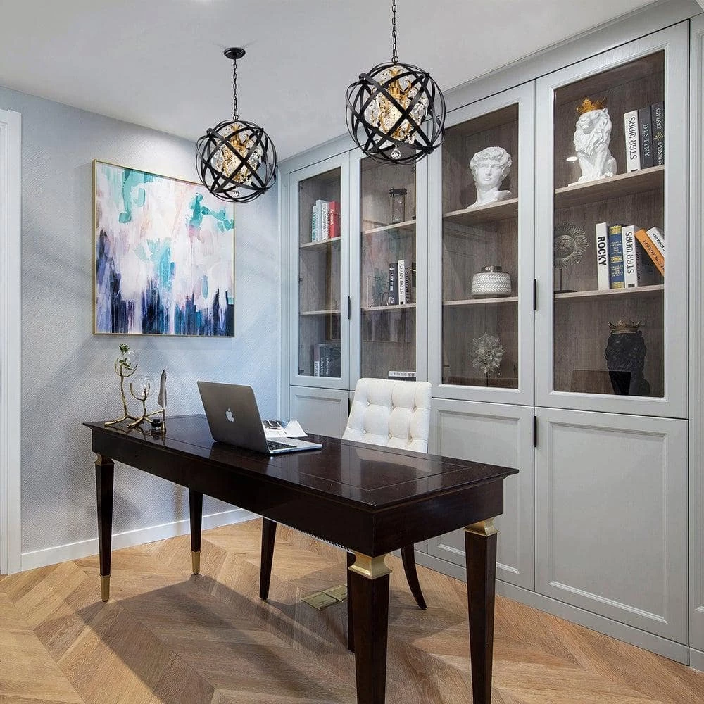 Offer a touch of class to your dining room with this stunning Kassdin globe chandelier. This fixture features an iron frame for durability, finished in matte black and gold. The beaded crystals surrounding the inside frame around the 1-bulb, gracefully refract light for an elegant appeal.